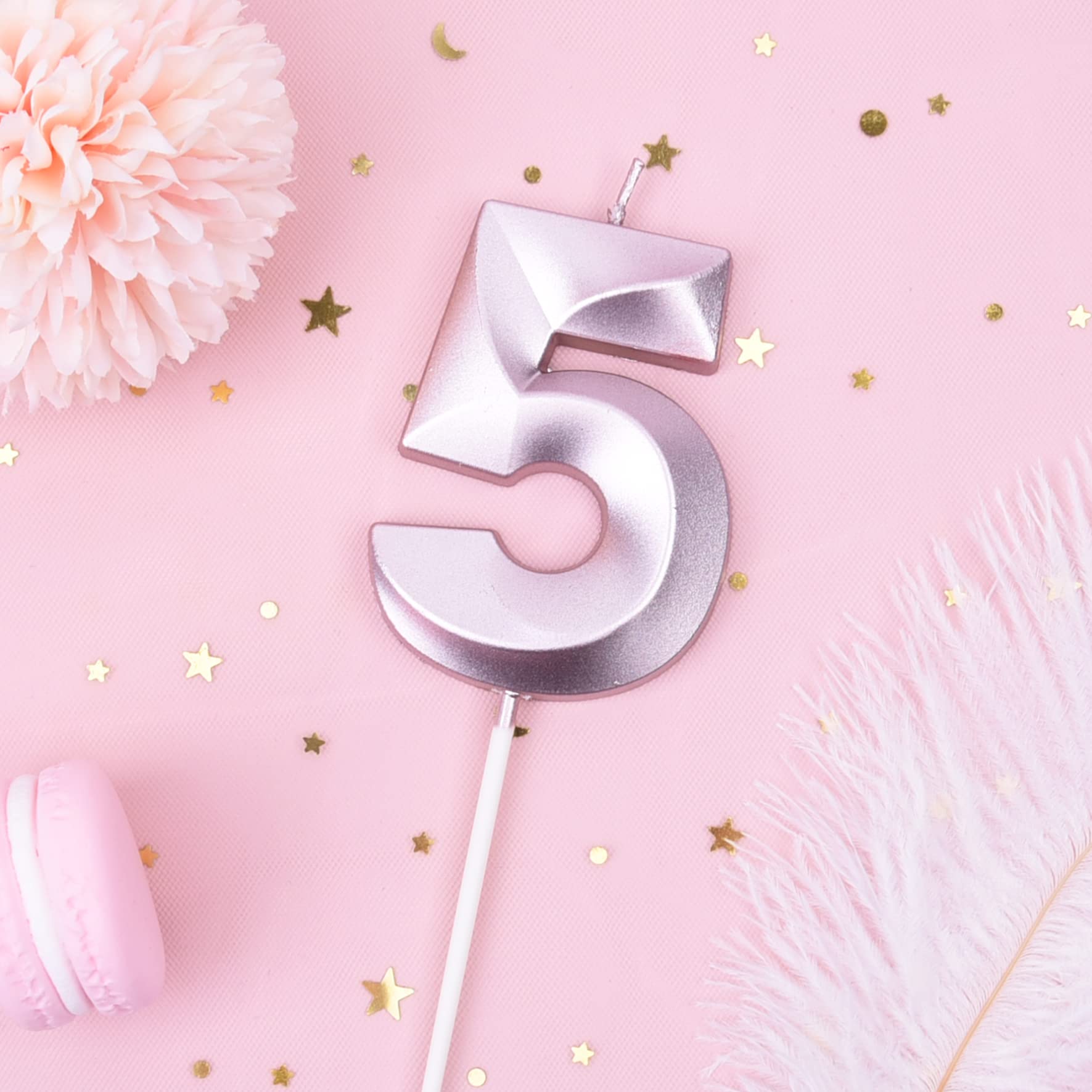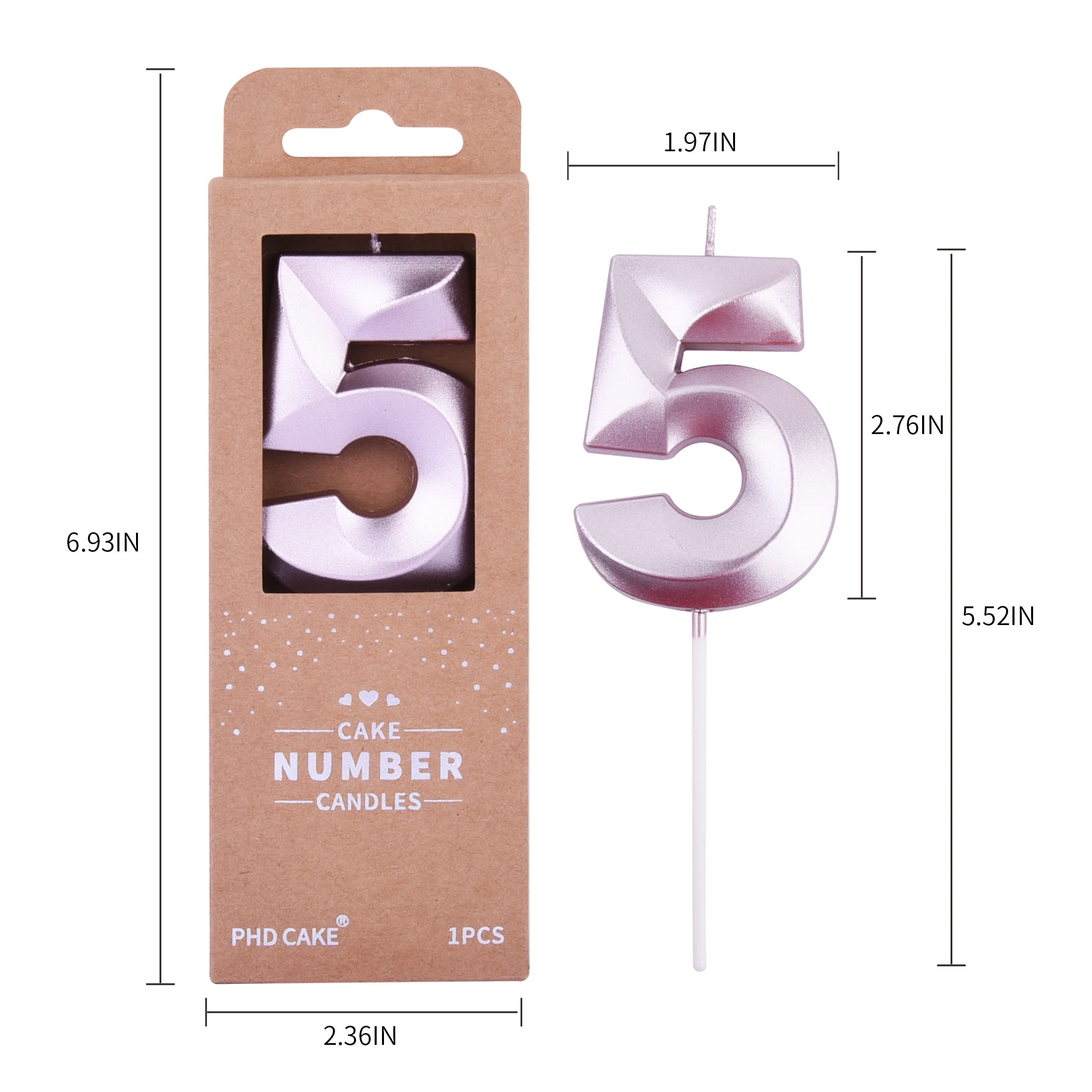 New: 2.76 Inch Large Diamond Rose Gold 5 Number Birthday Candle designed to make your cake and birthday a unique and truly inspiring event.
