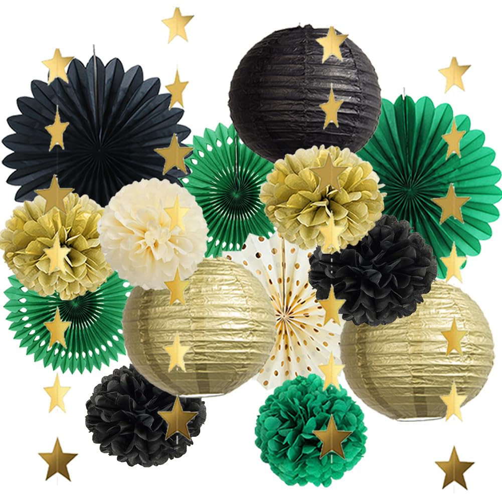 PREMIUM MATERIAL: Much thicker than others, non-toxic, tasteless, reusable, balloons green black gold, designed to last for hours of festive fun, made with high-quality latex that stays inflated throughout your event, no need to worry about balloons deflating mid-party; Kid-Safe, without harmful chemicals, and suitable for children aged 3 and up