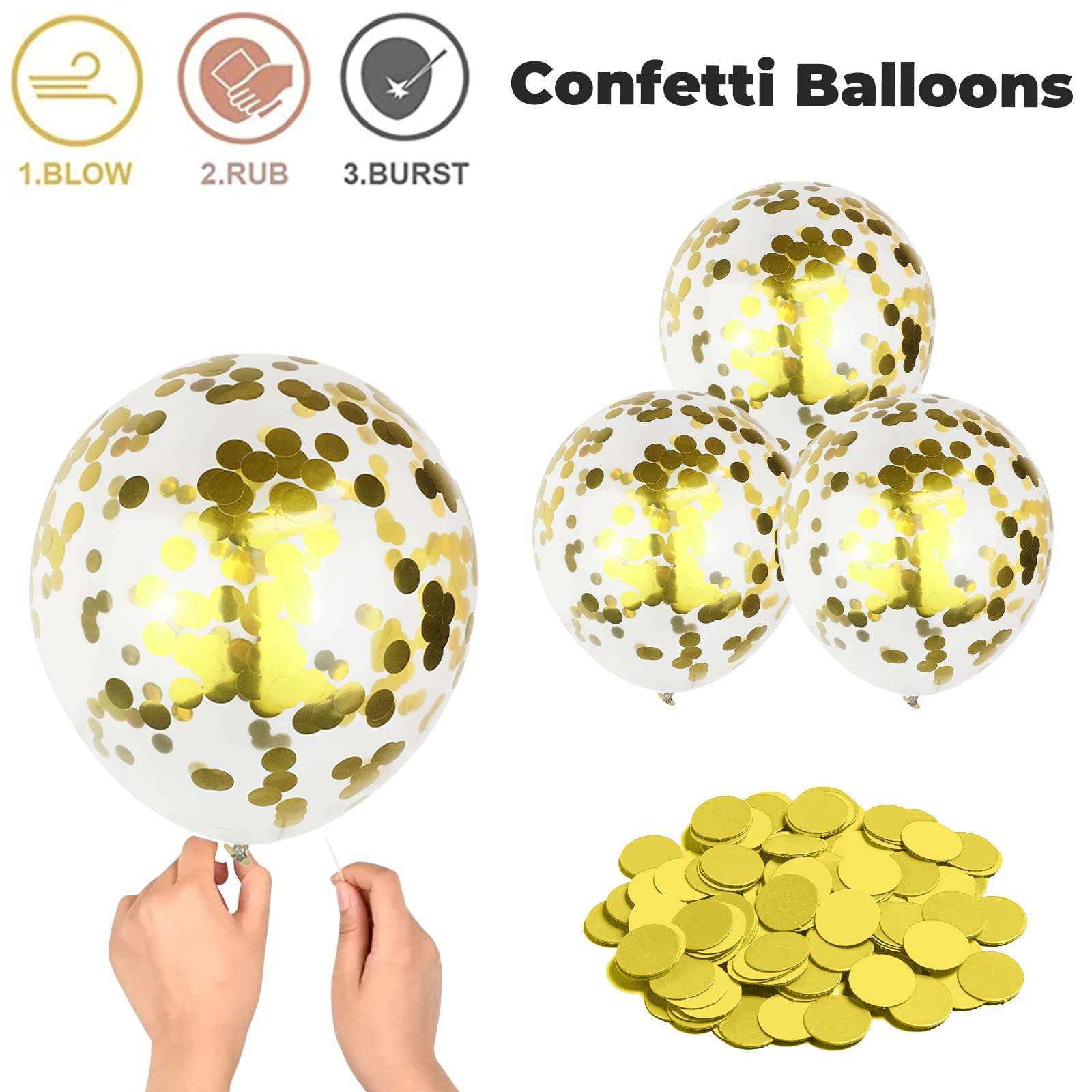 EASY TO INFLATE: Save time and hassle with dark green black gold party balloons, which can be easily inflated with a hand pump or a high-quality helium tank, making party set-up quick and easy, no need to spend hours inflating balloons one-by-one, the filler can be water, air, helium or oxygen, stick the confetti to the side, make balloons look more beautiful