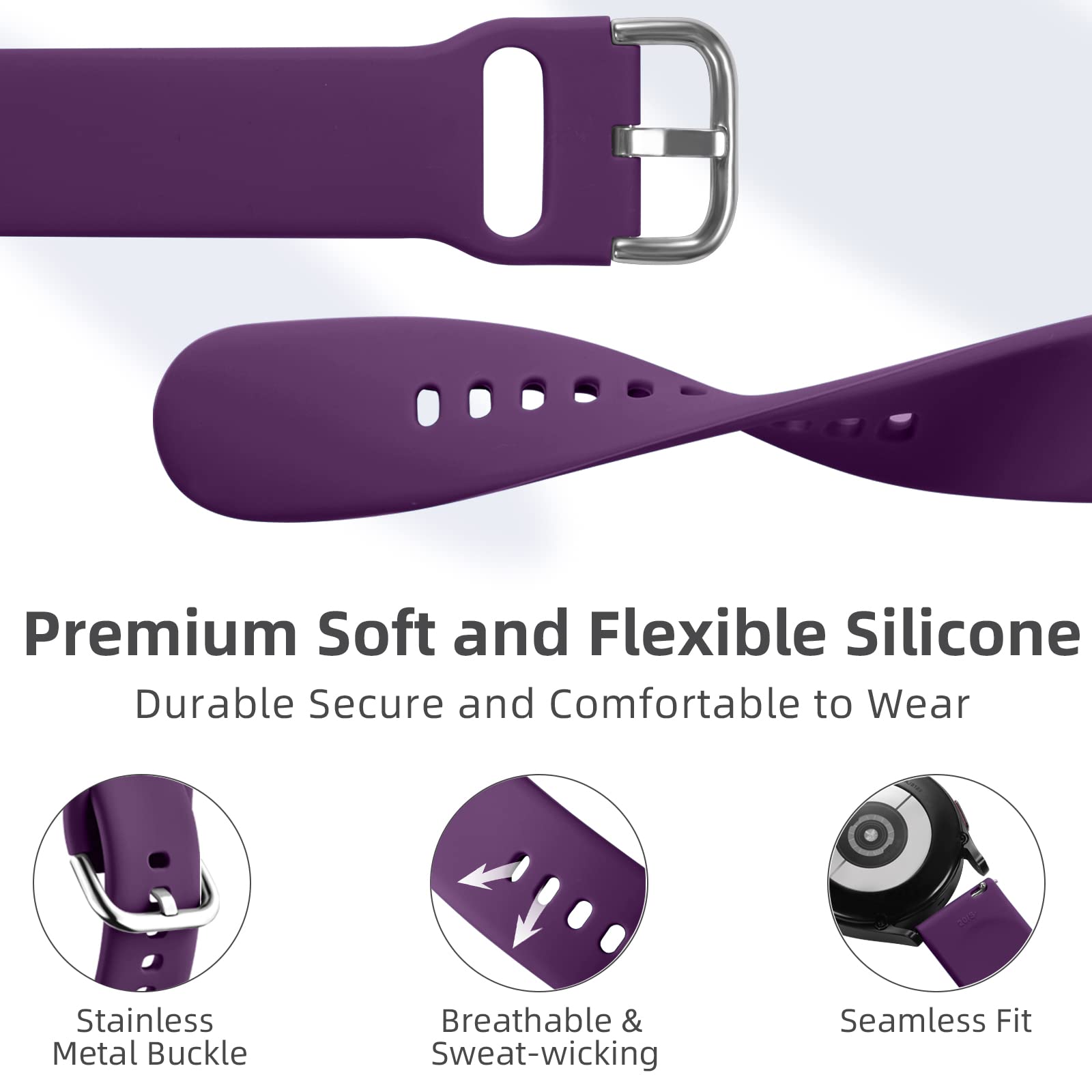 【Premium Silicone Material】DaQin 10 pack silicone sport bands for Samsung Galaxy Watch 4 40mm 44mm are made of high-quality silicone material, which are durable, soft, skin-friendly, flexible, breathable, smooth, waterproof, sweatproof, flash drying, anti-dust, lightweight, preventing your skin from irritation and great for daily wear