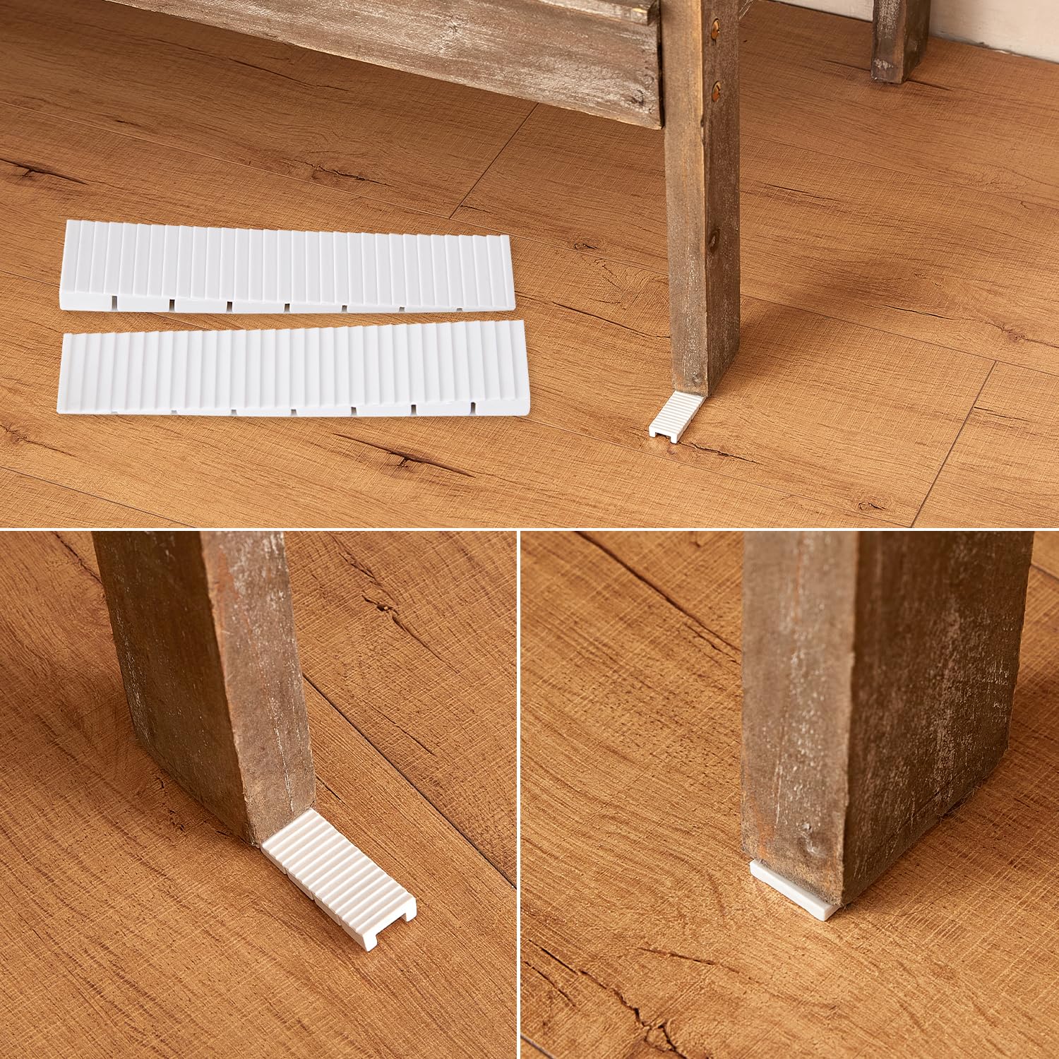 Furniture Plastic Shims Use to stabilize and level various objects. Great for leveling bookcases, Toilet, tables, doors, windows, plumbing fixtures, cabinets, playhouses, sheds, deck & mailbox posts a breeze.