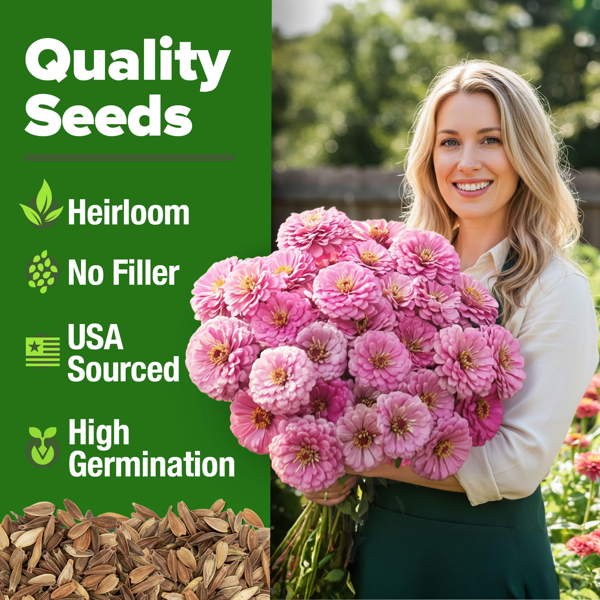 ARCHITECTURAL PINK MASTERPIECE: Zinnia Luminosa is a "Pink Velvet Monolith" designed for gallery-style gardens. This high-end cultivar offers a hyper-volume, hyper-color effect that transforms any landscape into a luxury magazine cover.