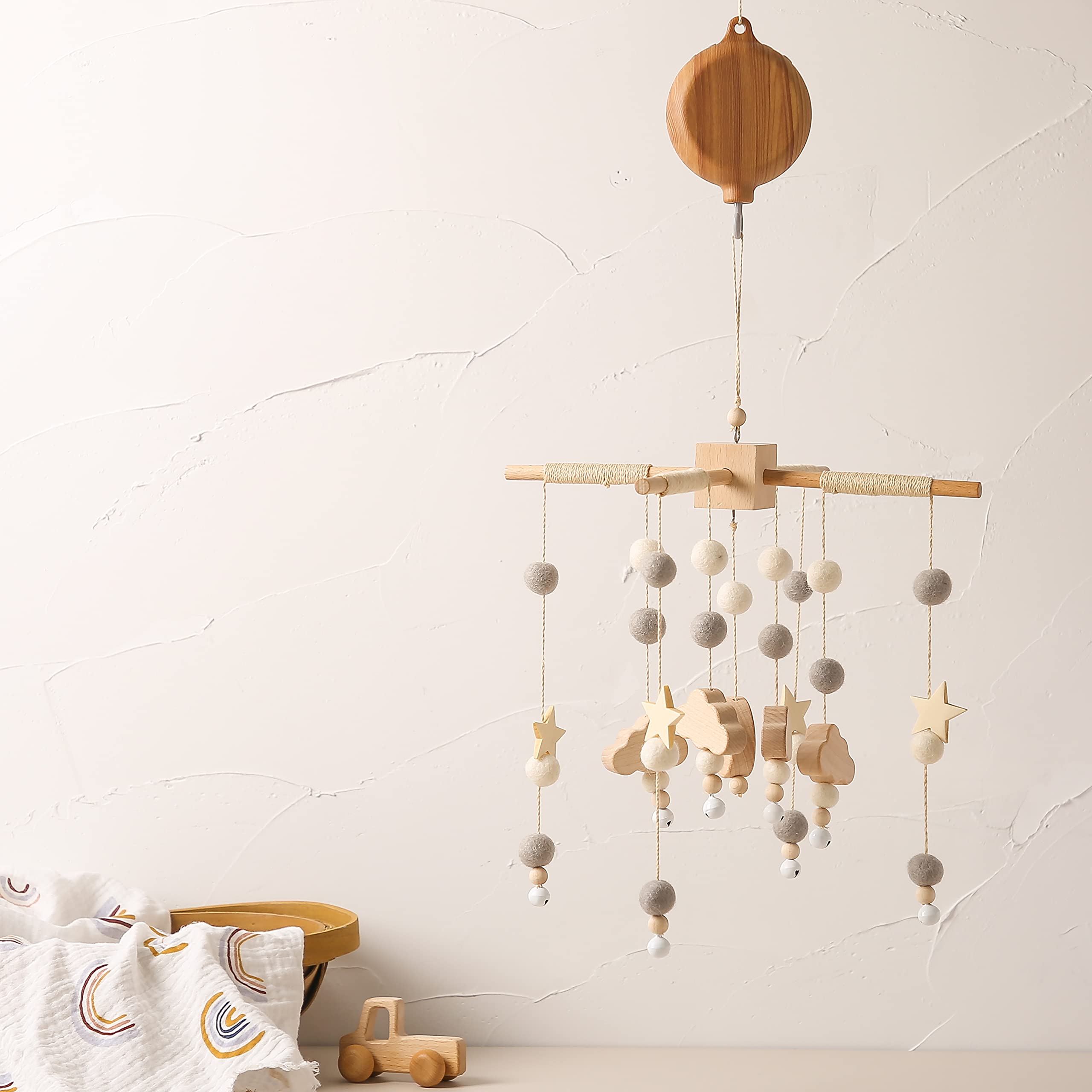 【Unique Texture 】: The unique texture makes the music box fit into many wooden baby mobile arm, bohemian, natural and beautiful, decorating a more beautiful bedroom for your child.Musical Box fits most crib mobile hanger,crib mobile arm.2 AA batteries are required, not included