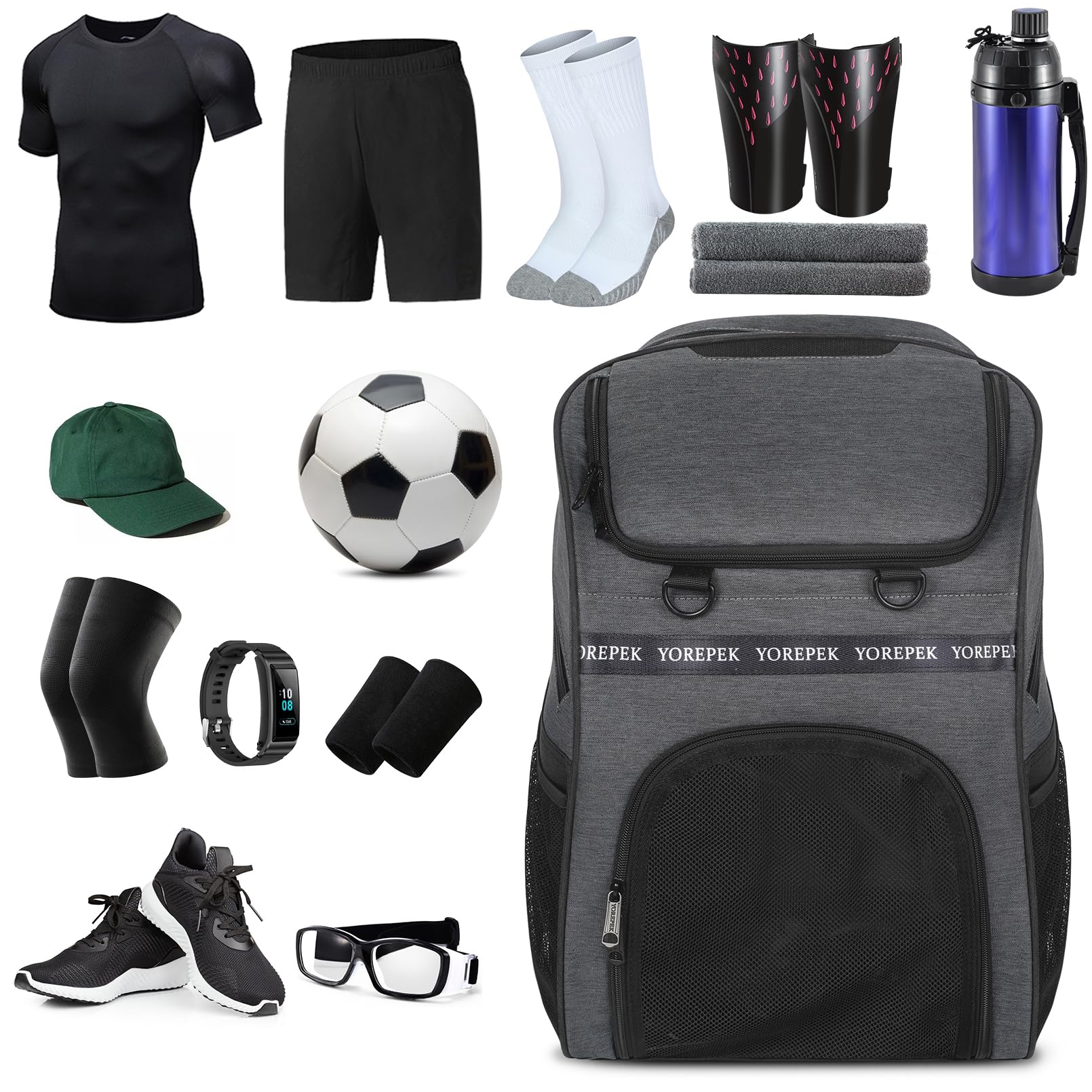 SEPARATE COMPARTMENT: The capacity of the soccer bag has 40 L, can put all of your sports equipment. Ball compartment at the top for size 5 soccer ball, basketball or volleyball, another separate area at the top has enough space to carry size 10 shoes. A main compartment can hold your soccer accessories like sweatshirt, leg pads, kneepad and wristband. You can use it as a soccer equipment bag or basketball backpack while soccer training, matches and leagues