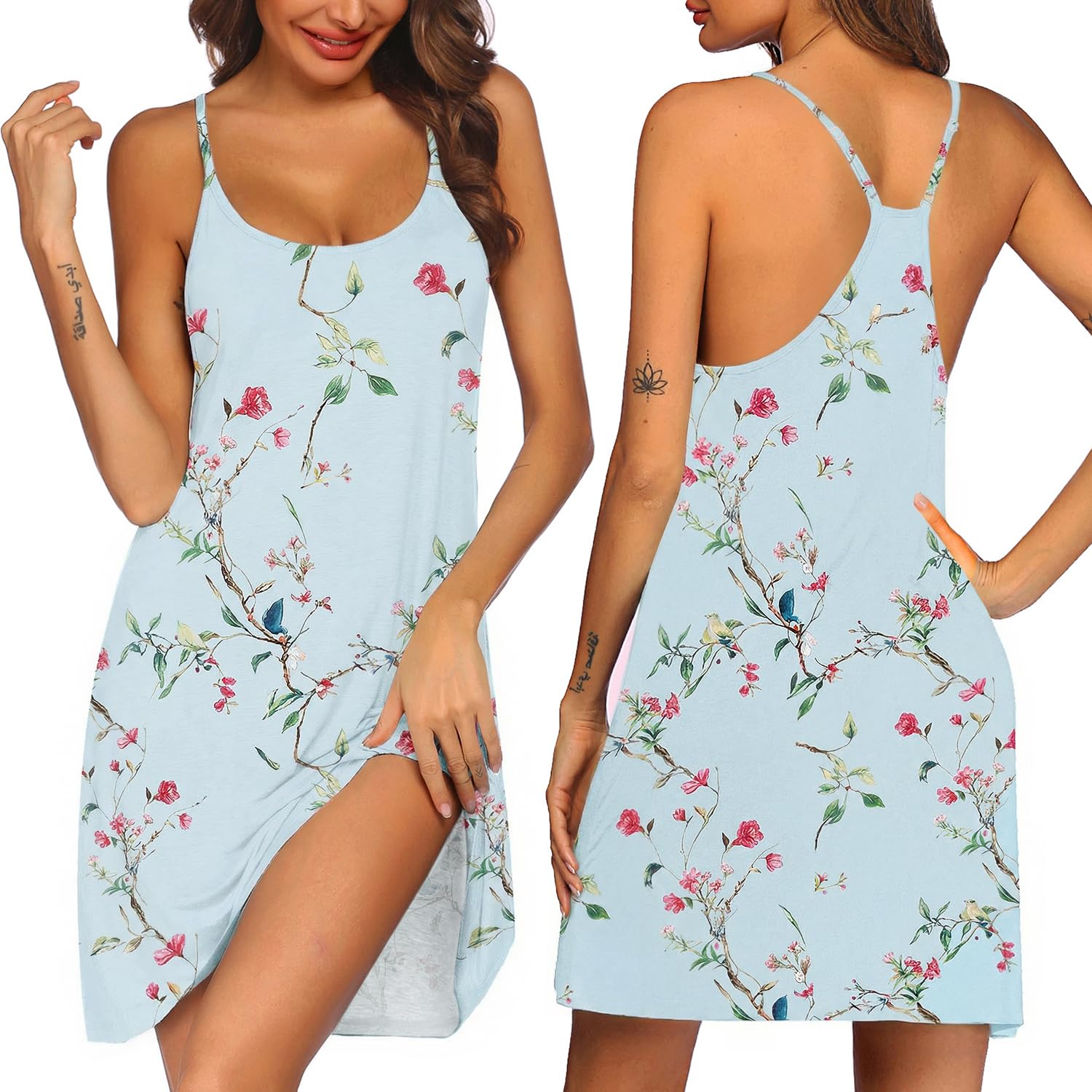 Material: The sleeveless nightgown is 95% Polyester and 5% Spandex. Stretchy breathable fabric with great touch, super soft and comfortable, makes it light and ideal for summer. Tips: Do not use a dryer
