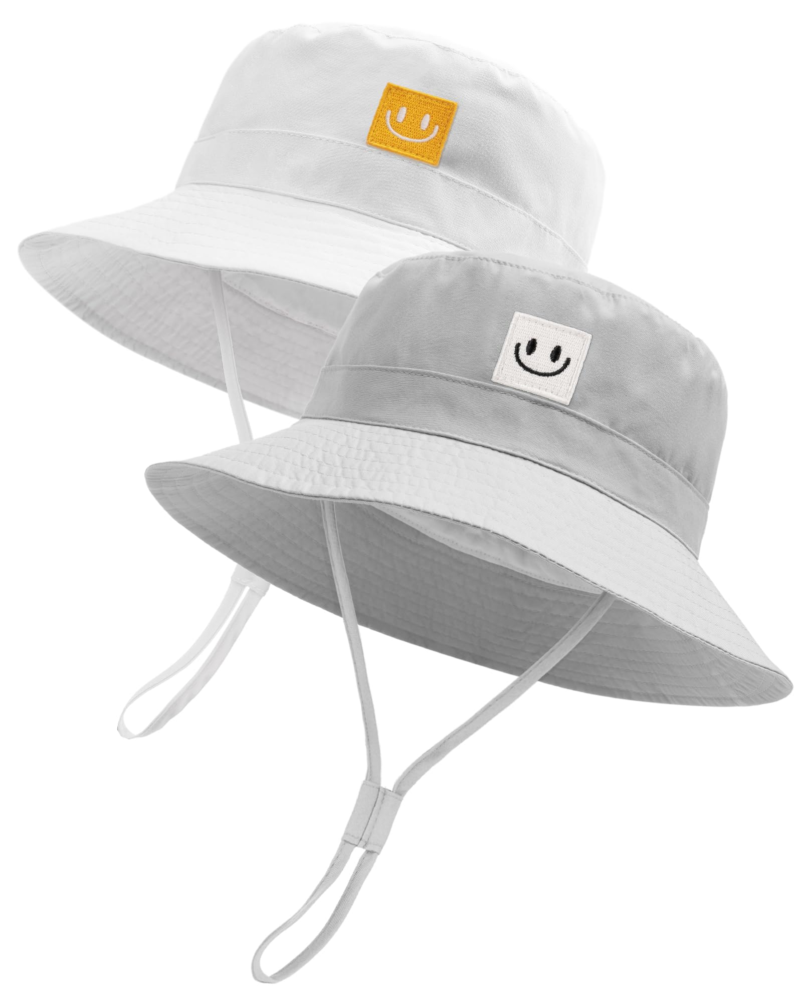 Adjustable size: 0-6M;6-24M;2-5T;this bucket hat grows with your baby ;The elastic adjustment buckle at the back of the toddler bucket hat can easily adjust the head circumference, which is suitable for most babies' head circumference; The chin strap design of the baby summer hat, even your baby can easily adjust to a comfortable position;