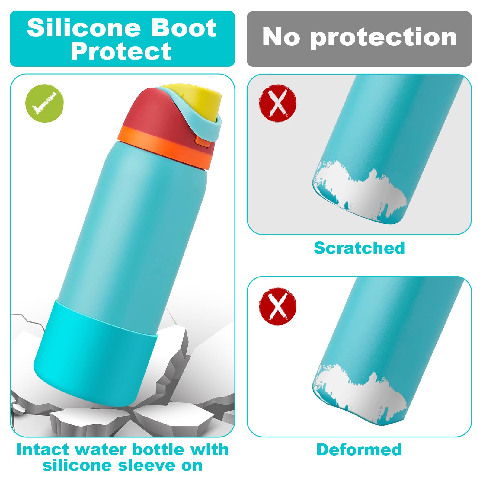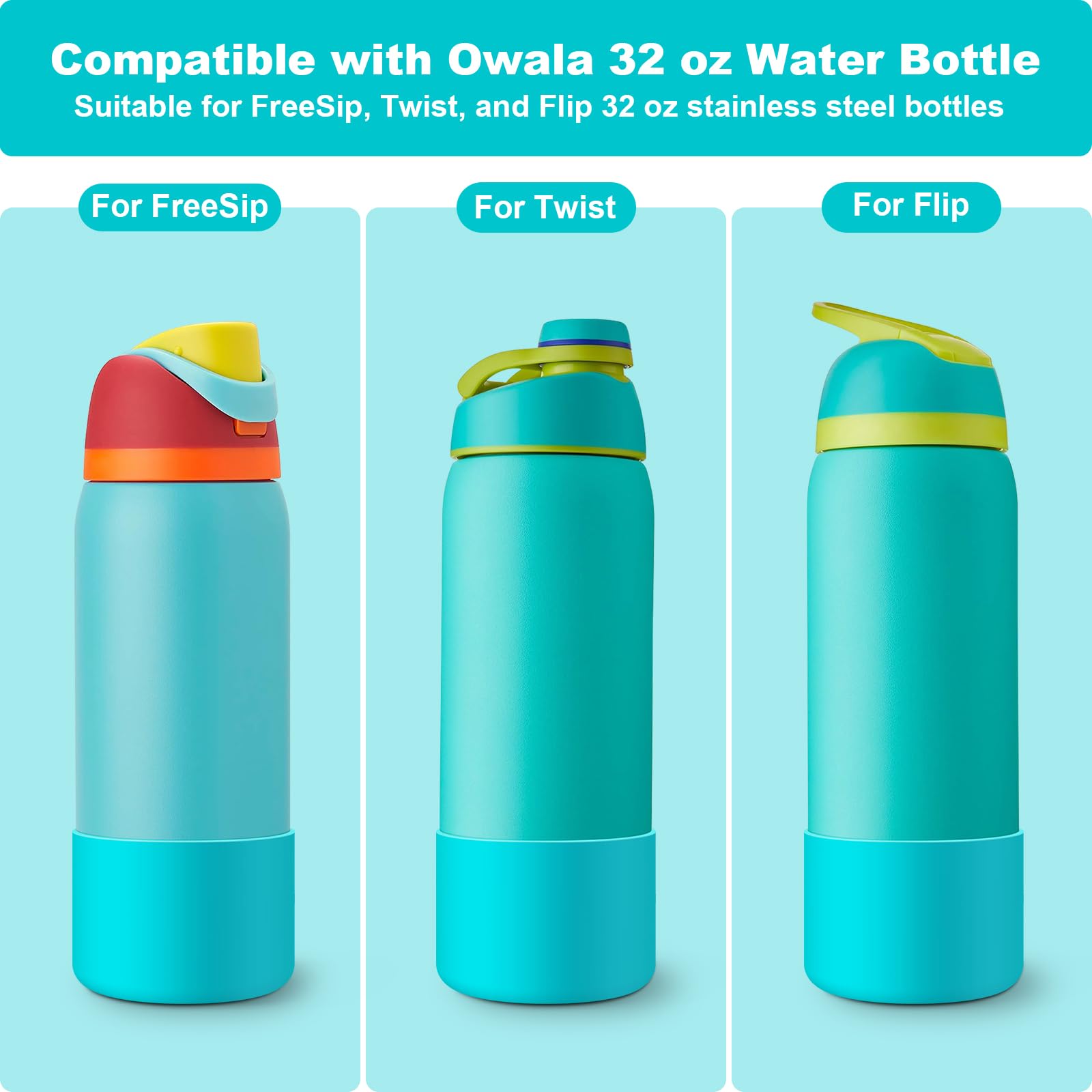 【Perfect Compatiblity】The silicone boot is suitable for Owala 32oz FreeSip, Twist, and Flip stainless steel water bottles. It is precisely made according to the size of the original cups, which perfectly fits the cup bottom and won't fall off easily.
