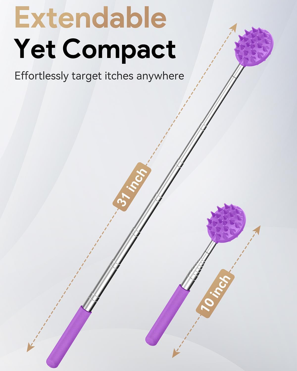 STRONG Extenable & Travel Size: Allow to retracts to 10" short for easy storage for travel,and extends up to 31" long making it easier to hit the right spots