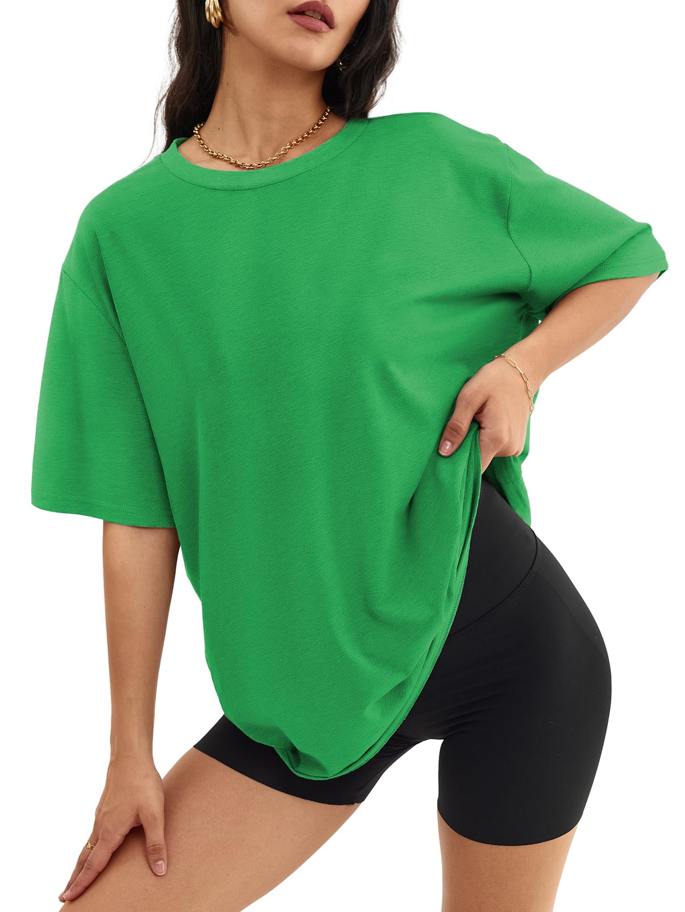 Design:Oversized workout shirts for women,short sleeve shirtrs,plus size,round neck,loose fit tops,basic tees,oversized casual blouse,solid color never out of style,easy to match with every style.