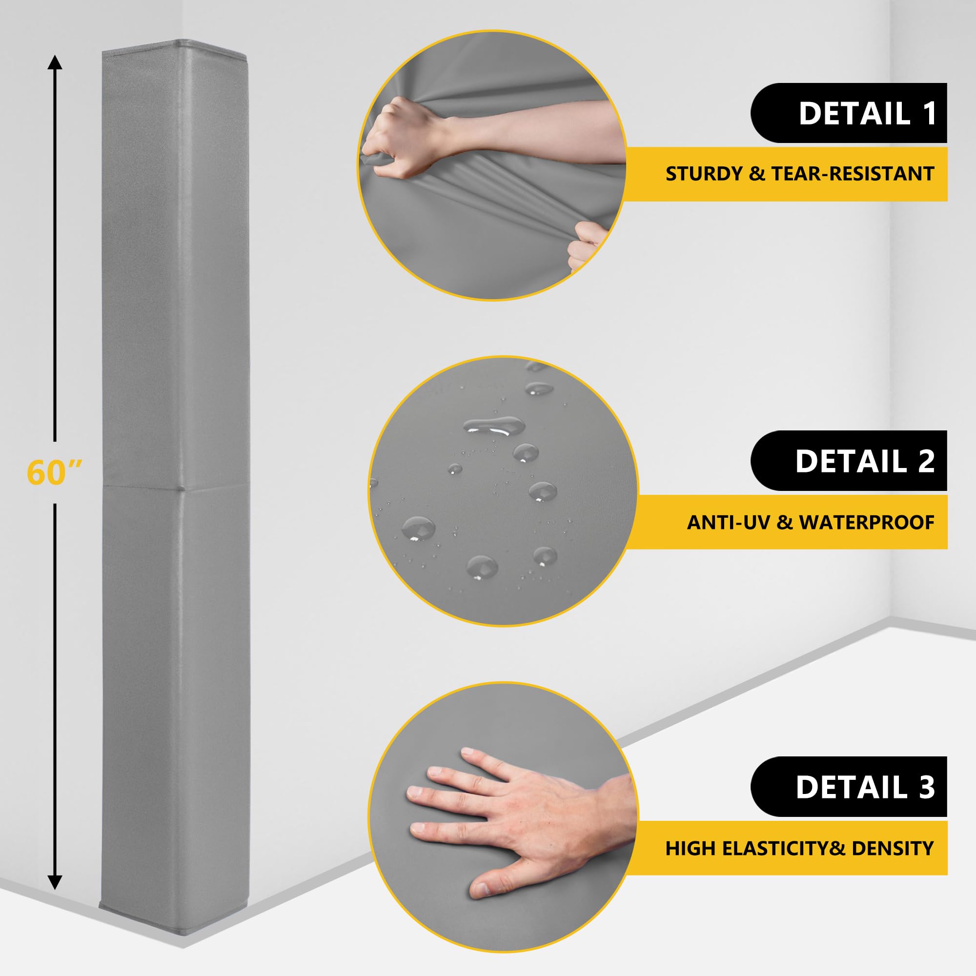【All-weather Wall Corner Pad】The high-quality vinyl PVC cover of corner wall padding for gym is waterproof and UV-resistant, which is suitable for outdoors.Our safety corner pads can withstand varying weather conditions without damage, while can be wiped clean effortlessly. You can expect long-lasting performance from this wall mat.