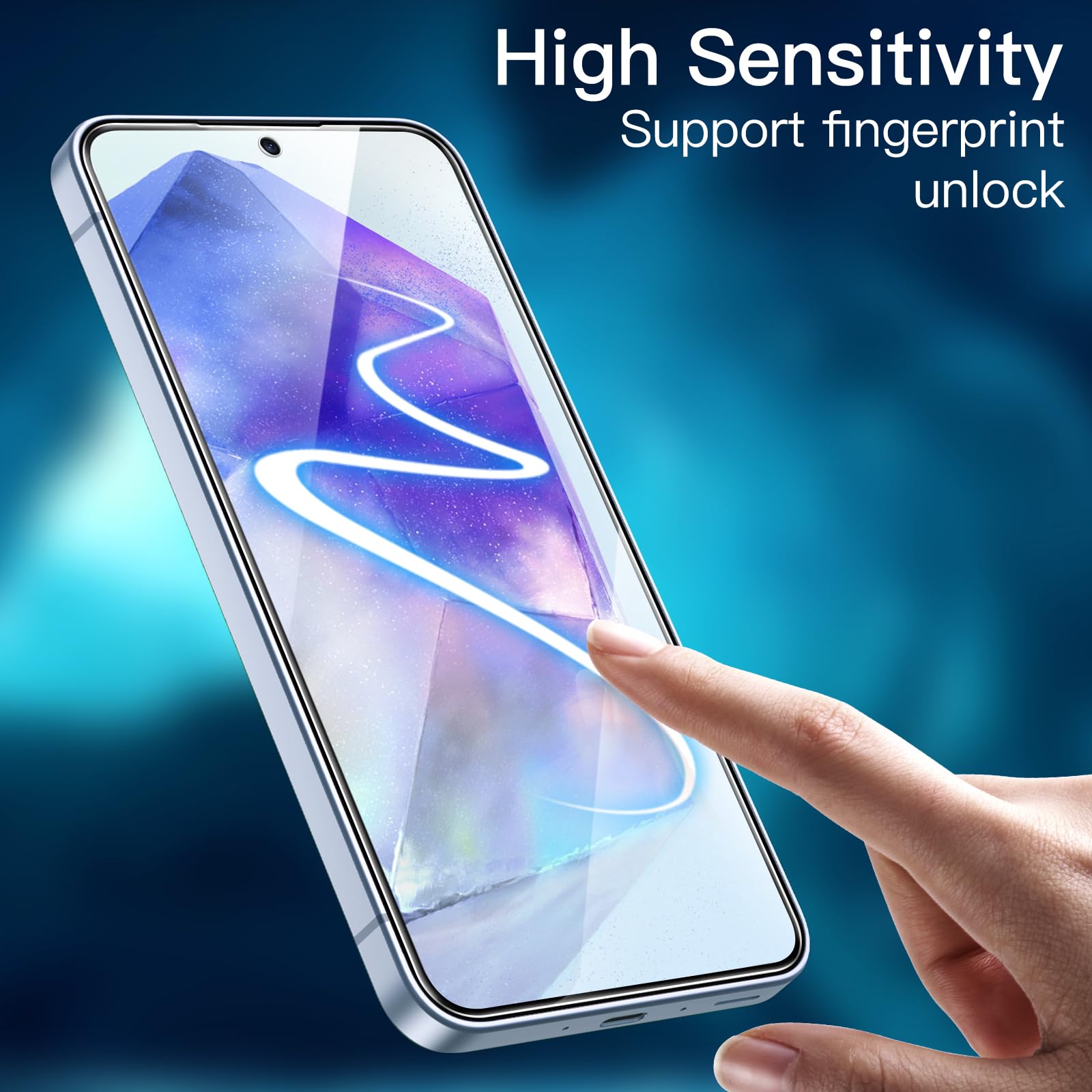[Fingerprint Unlocked] Designed for Samsung Galaxy A55 5G 6.6-inch. For a better unlocking experience, please go to Settings of your device to activate the Touch Sensitivity and re-enter your fingerprint after applying the film
