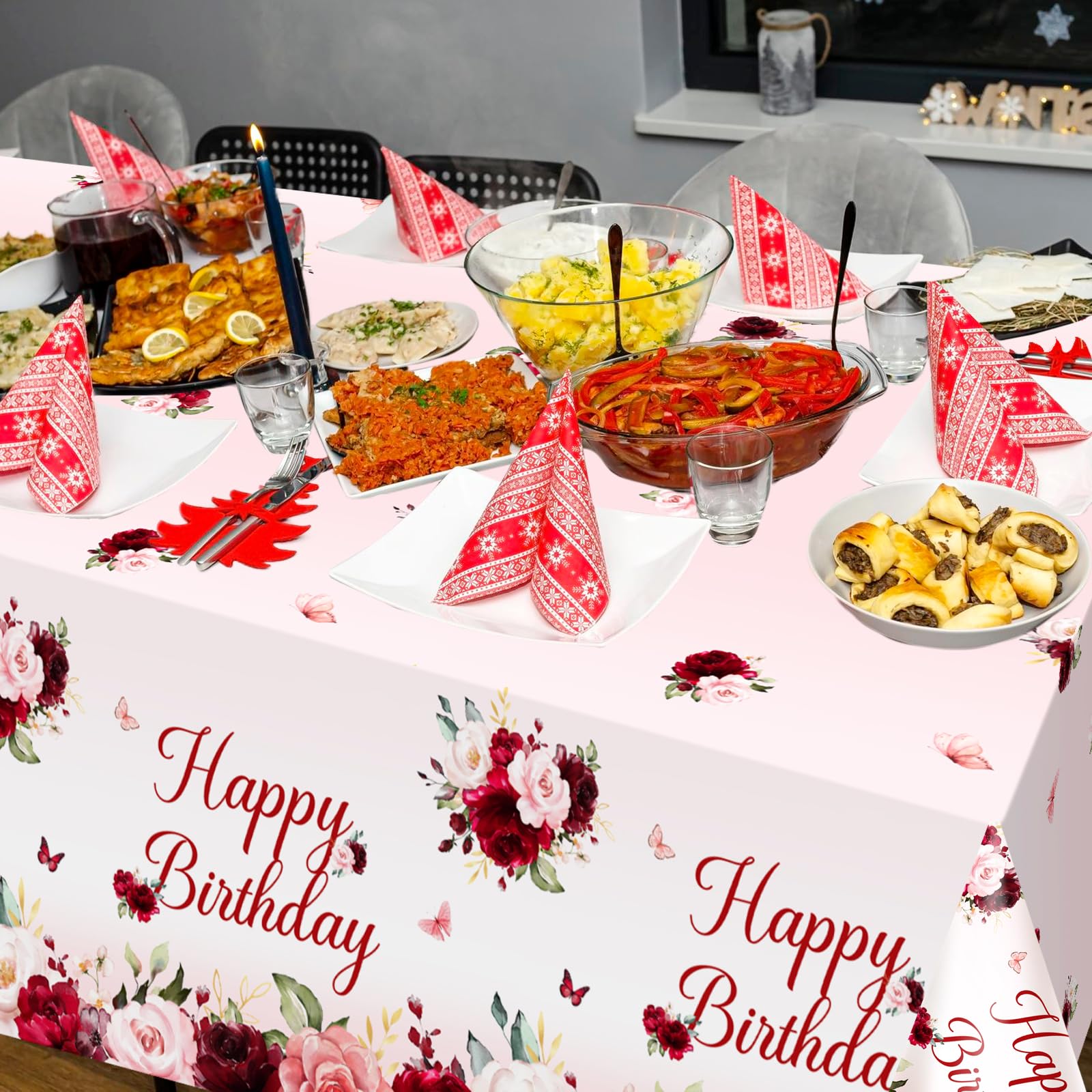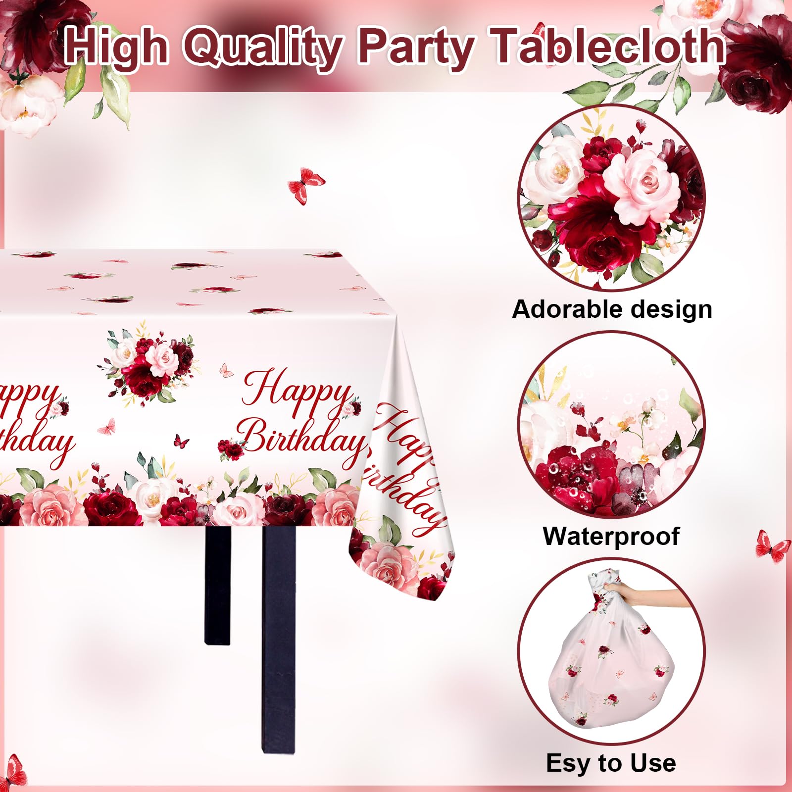 Large Size for Your Event: The package includes 3 pcs burgundy floral birthday party tablecloths, each size is 108x54 inch ( L x W ), suitable for most dining tables, they can be applied for both indoor and outdoor table decorations