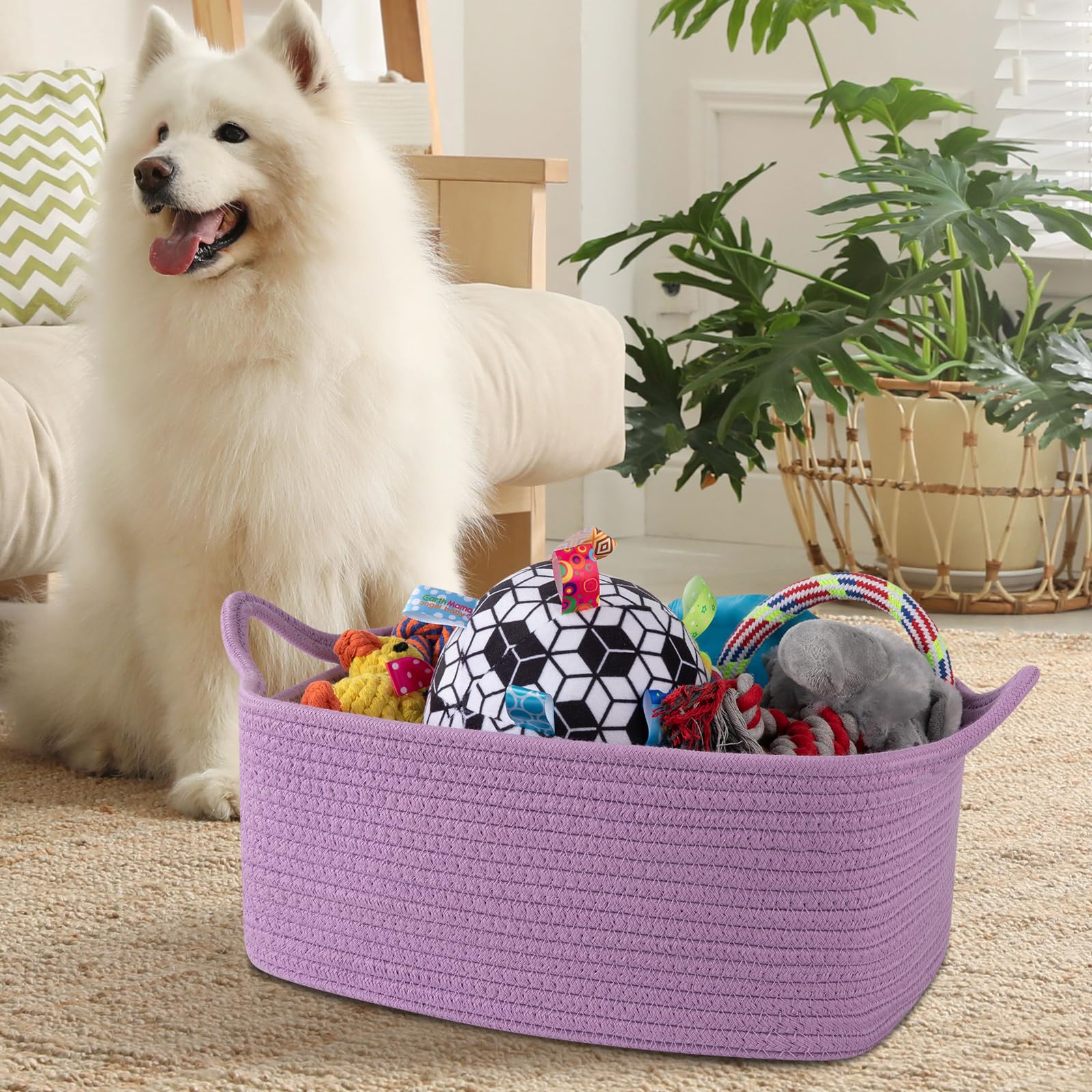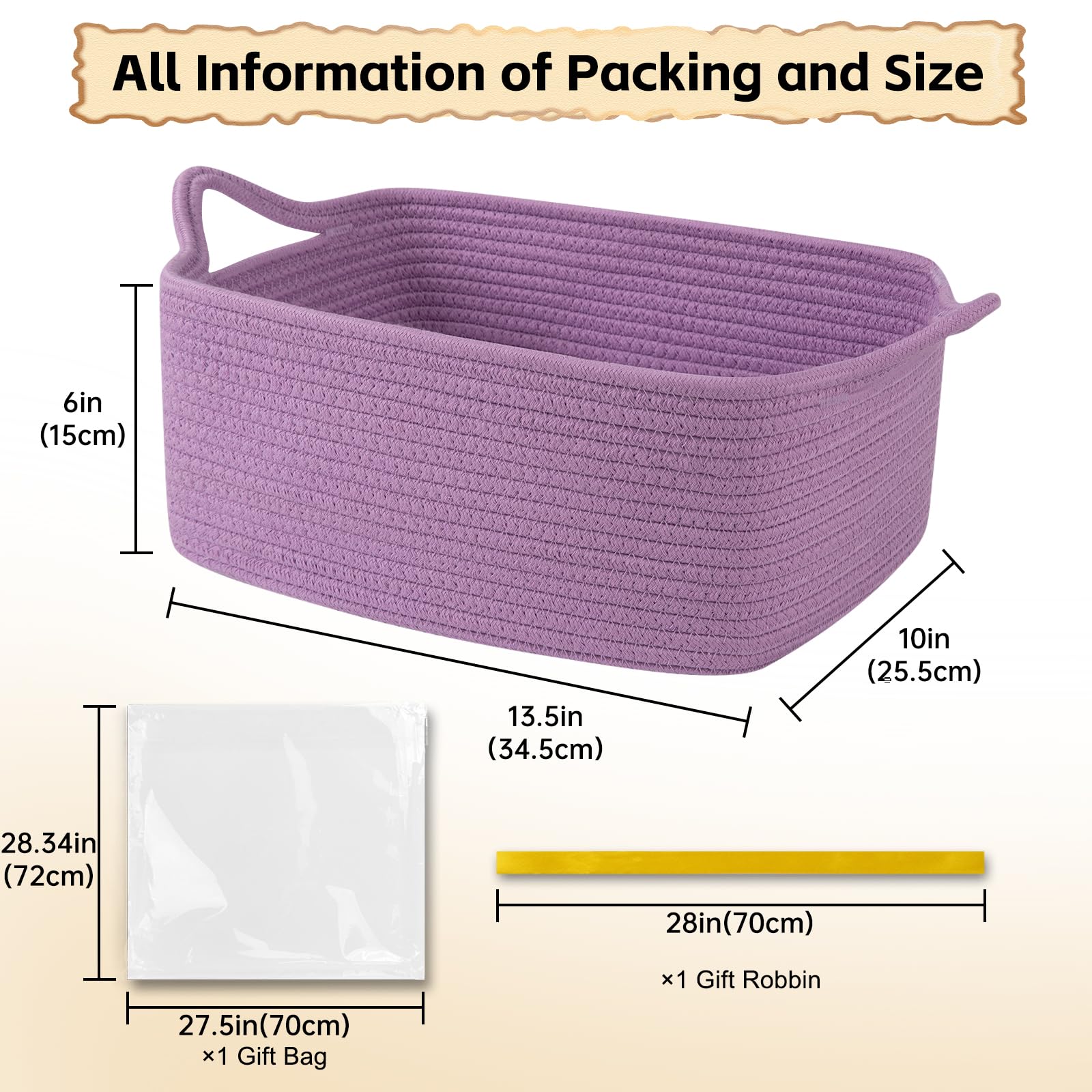 Safe Material: The basket is 13.5*10*6in and made of 100% pure cotton material, no chemical material, no odor, soft and skin friendly. It is no sharp edges that may scratch the floor, especially suitable for children and pets.We are passionate about providing you and your family with a healthy and clean home atmosphere