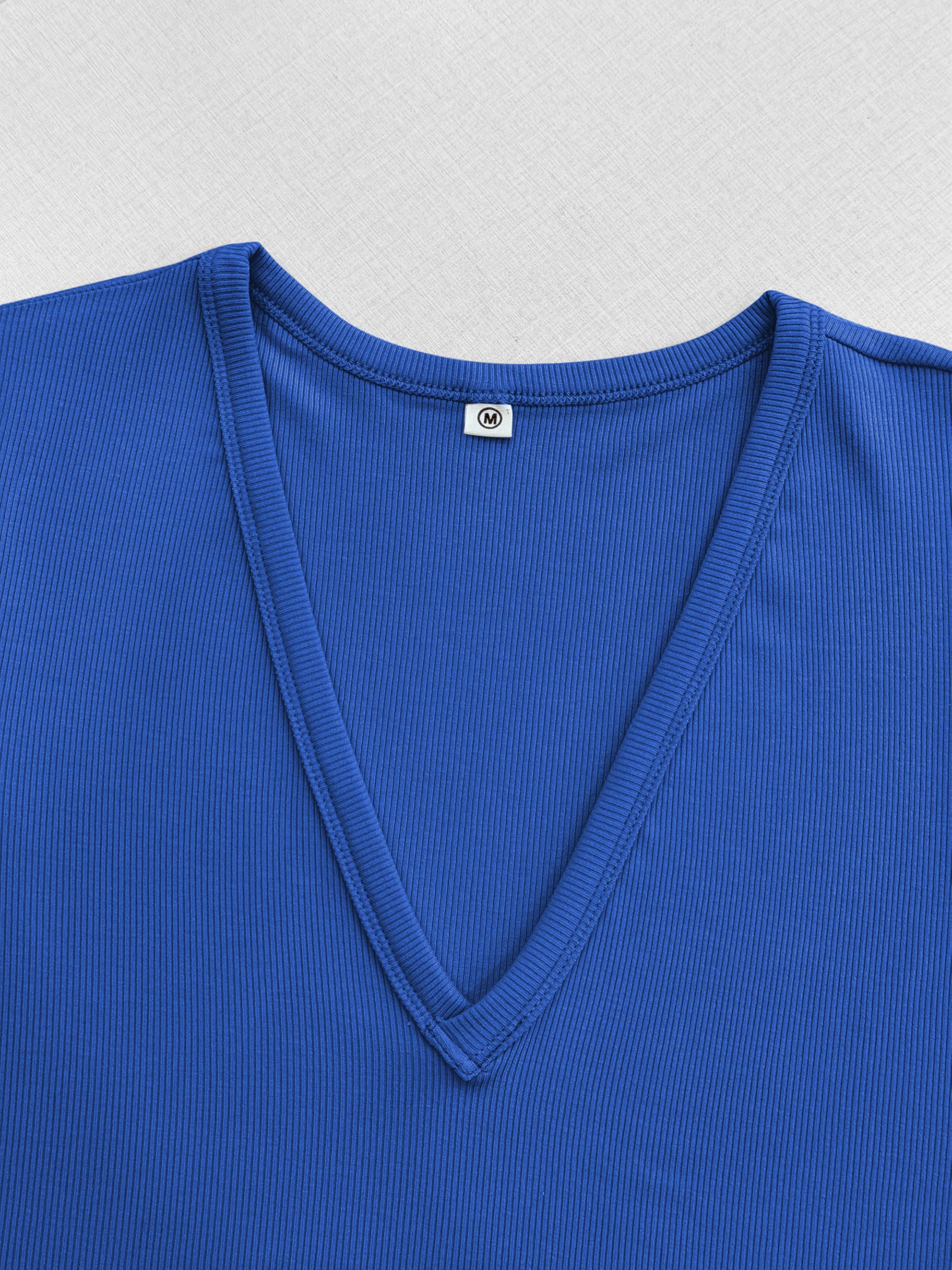 Features: Cap sleeve, V-Neck, Solid color, Slim fit, Ribbed knit, Simple and Basic Tops for daily. It's Comfy Against the Skin, Nice for Laying or Inter Hoodies/Shackets.