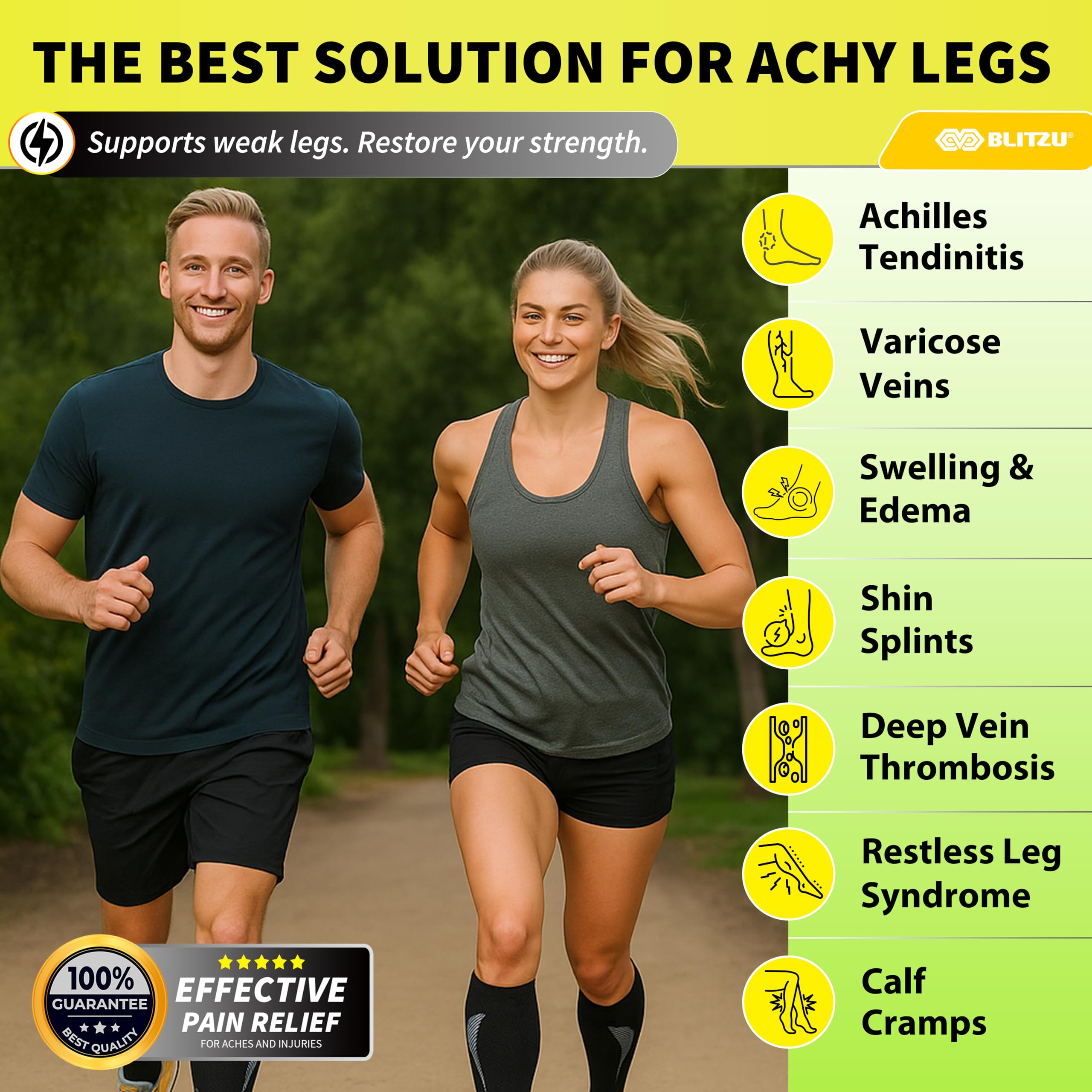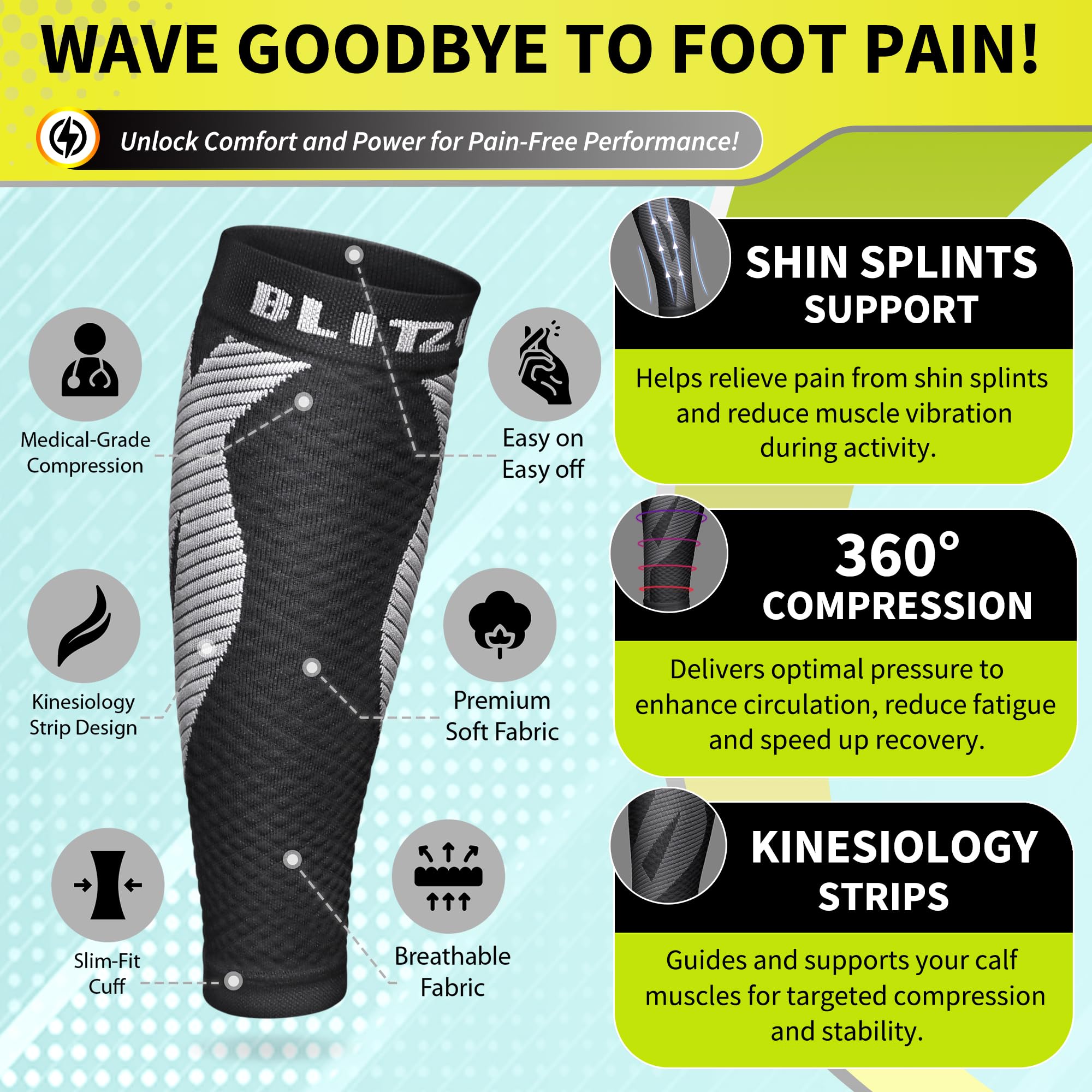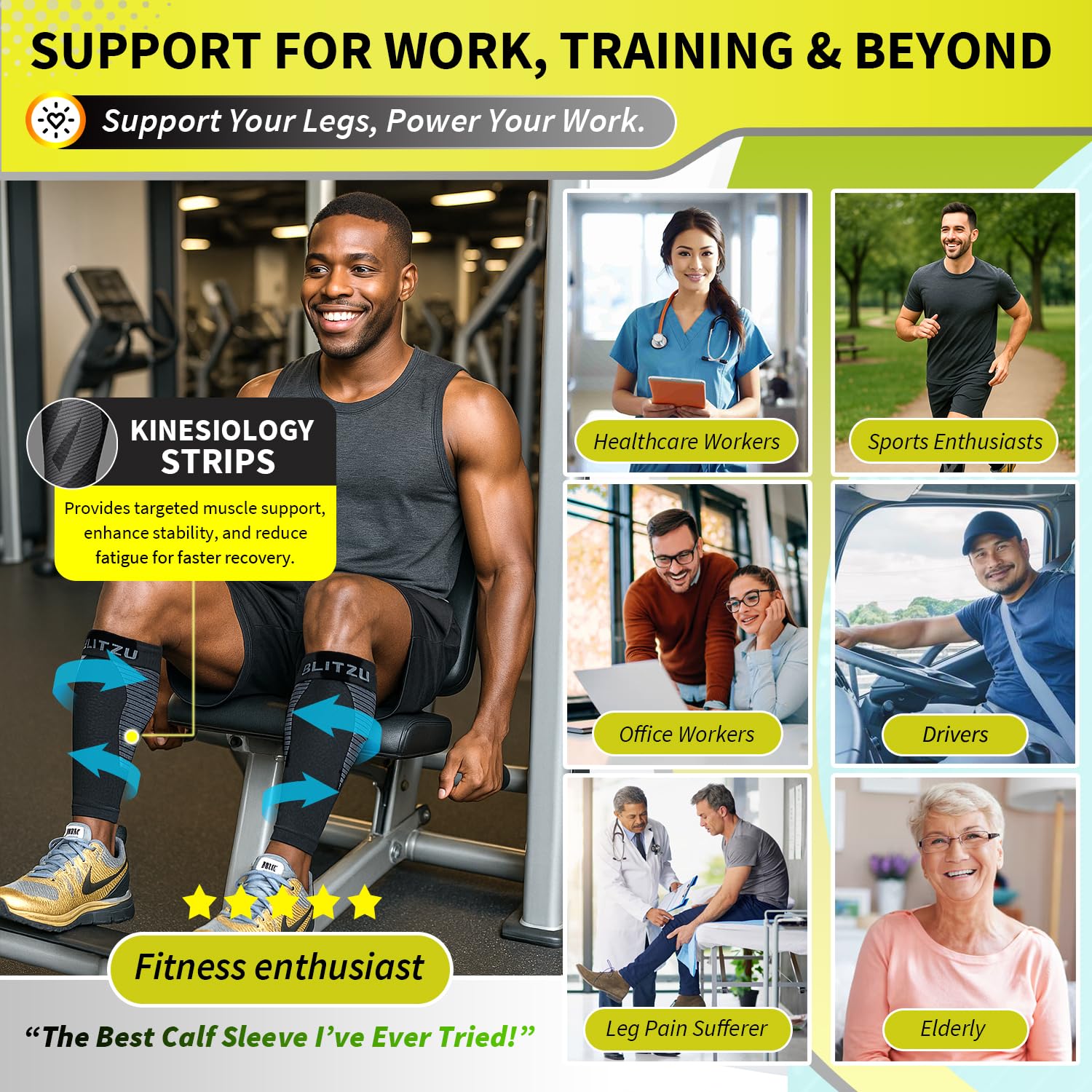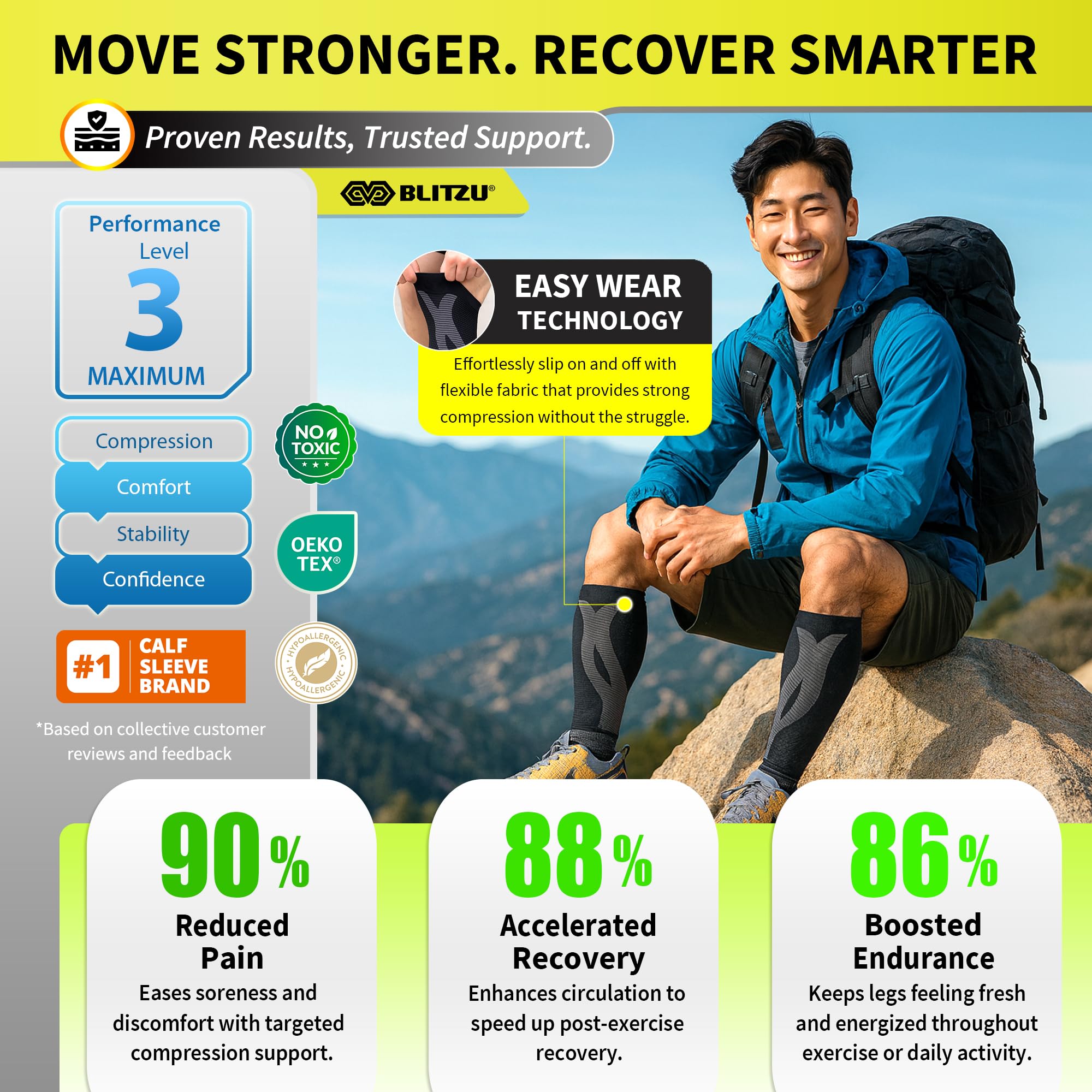 Effective Compression for Swelling & Varicose Veins Relief: The BLITZU Calf Compression Sleeves feature graduated compression to improve blood circulation, reduce swelling, and alleviate discomfort caused by varicose veins and pregnancy-related leg swelling, making them perfect for nursing mothers and individuals with circulation issues.