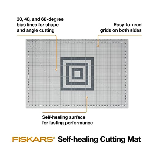 This Fiskars Self Healing Craft Cutting Mat is perfectly sized for cutting extra-large fabric squares, long fabric strips, and full widths of fabric directly from the bolt. Ideal for sewing, quilting, scrapbook, stationery, and gift wrapping, this extra large cutting board protects your work surface from the blade at hand, while keeping the project you're working on straight and aligned. The grid design of this flexible cutting board conveniently allows you to cut and measure in one step. The mat is double-sided for extended life and is made with a durable yet flexible material, so you can store small and cut big. Store flat away from sunlight, heat, and cold; Clean with warm water and mild soap. Start Your Craft Projects with the Right Tools By constantly seeking ways to improve creators' pain points, Fiskars makes it easy for you to explore exciting new territory with simple, uniquely useful tools designed to last a lifetime. From cutting tools for sewing and quilting, including scissors and shears, to crafting tools ranging from stamps to stencils and more, our creating portfolio also includes new precision DIY tools for those working with more sophisticated materials, as well as paper cutting tools such as punches and trimmers, all designed to help you do what you do best - express yourself. Whether you want to create your own style or put a stamp on the place you call home, our intuitive, quality tools are designed with your passion in mind.