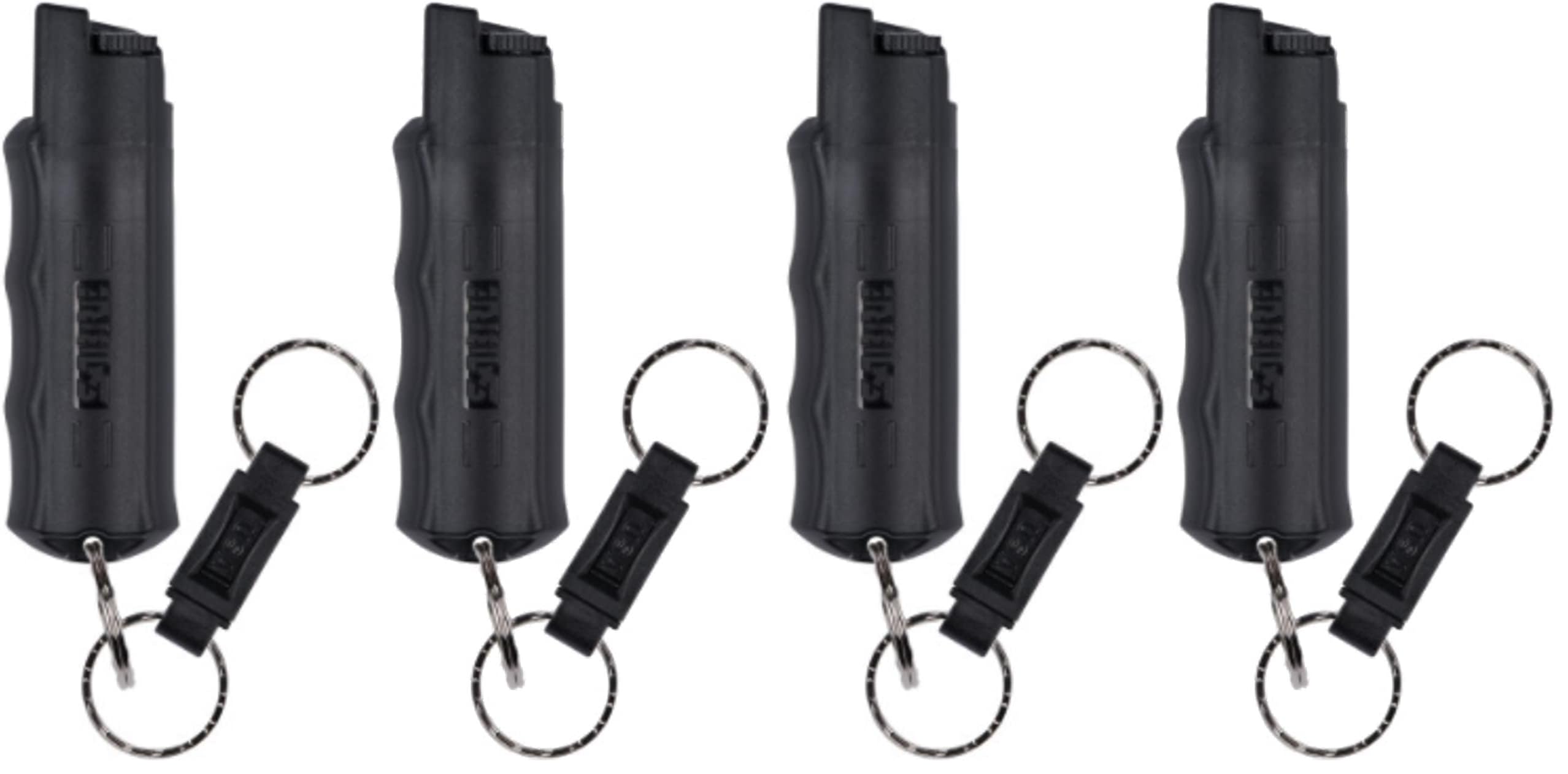 FASTER & EASIER TO HIT THE TARGET: Easiest to grasp finger grip enhances your aim and helps keep your eye on the threat; Includes Quick Release Keychain for immediate access to spray when seconds count; Easy To Attach - keys, bags, purses, lanyards for instant access; Secure and easy to use twist lock safety