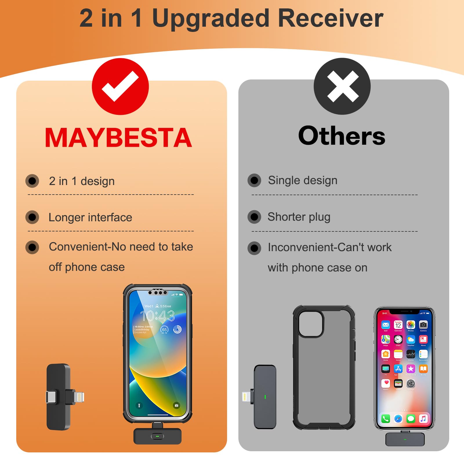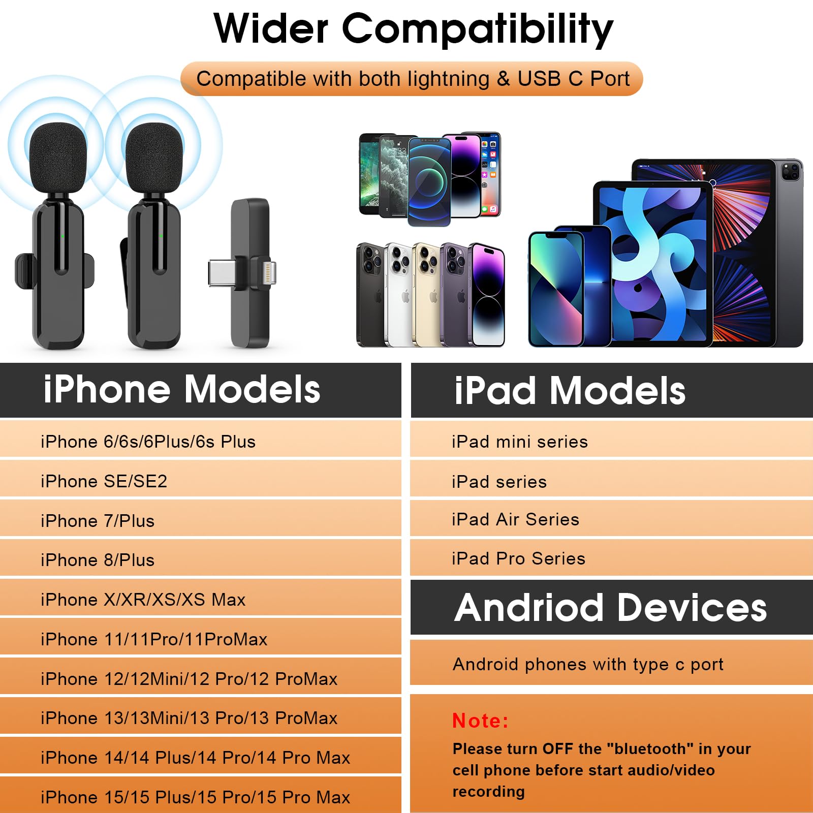 Wider Compatibility: The upgraded wireless clip-on microphone is packed together with a receiver, which is equipped with both a lightning and a USB C plug, making it possible to work with both iOS and android system. That is to say, the bluetooth lavalier microphone can work with all the iPhone & iPad series, including the latest iPhone 15 and iPad Pro series which is usb c port, making it convenient for content creators to make recordings for podcasting, vlogging, live streaming interviewing