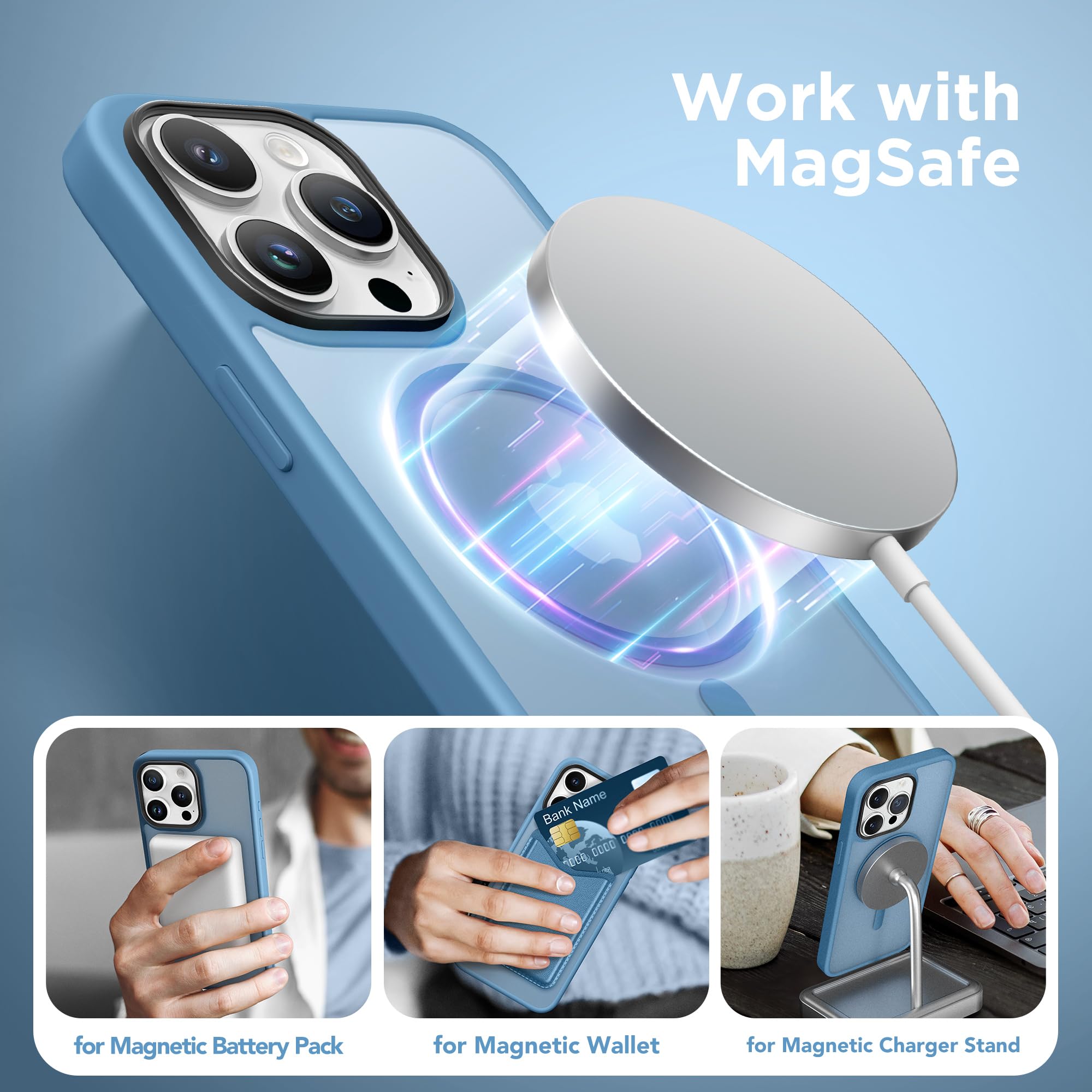 【Compatible with MagSafe】This iPhone 15 pro max phone case has a built-in magnetic ring. 48 strong N52 magnets are evenly distributed, magnetic strength is 4X stronger than other case. It can be perfectly and safely aligned with Mag Safe and other QI-certified chargers to achieve safe and fast wireless charging. It can be firmly and securely connected to all Mag Safe accessories, such as magnetic wallet, charger, battery pack, car mount, and will not fall off no matter how rotated or shaken.
