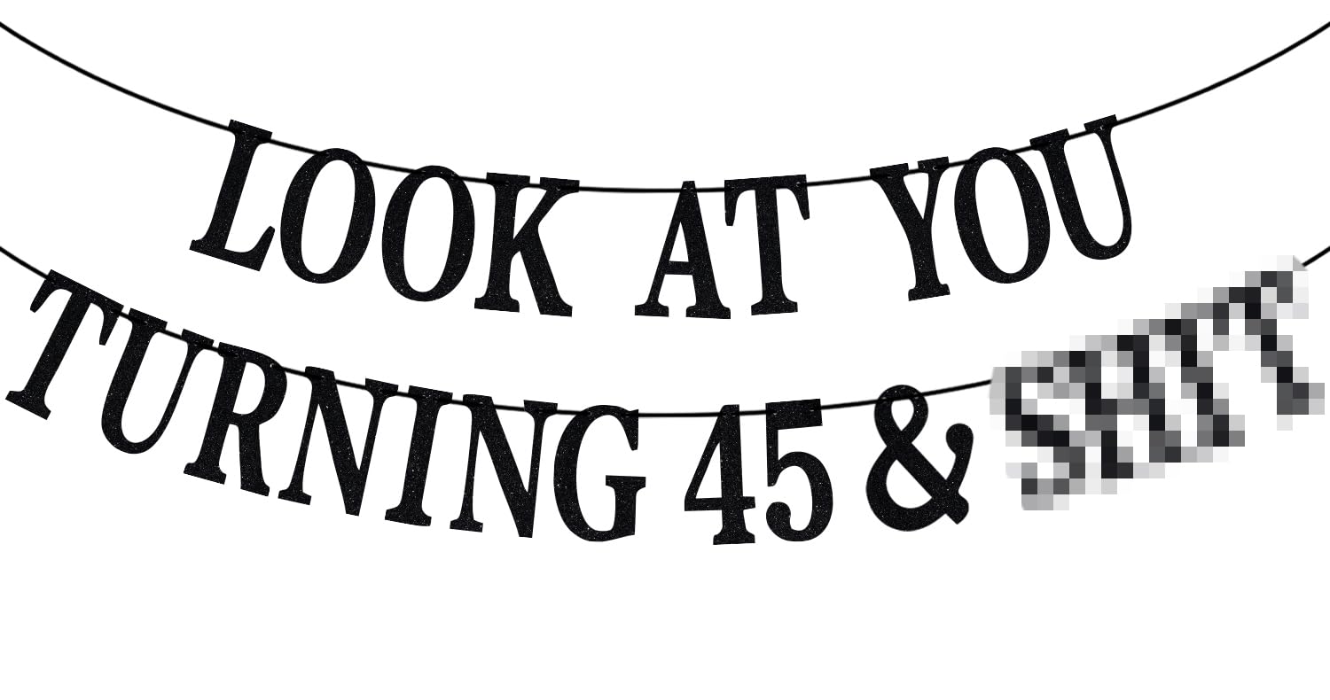 Received included: Letter cards spelling the phrase "Look at You Turning 45 & Sh*t". Awesome decorations: It is very suitable for the 45th Birthday party. Special party decorations can add an enjoyable and active atmosphere to these scenes, leaving a happy and unforgettable memory. High quality: Banners are made of glitter premium cardpaper. They are rigid and reusable. Easy to DIY: The card and the rope are separate, you only need to spend a little time to assemble. Choose us and believe us: We support the concept of customer first and product first. If the quality or damage occurs during transportation, we will solve it.