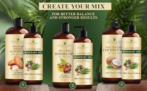 ROSEMARY CASTOR OIL FOR HAIR & STYLING – Rosemary essential oil is known for its nourishing properties. Rosemary oil can help with conditioning the scalp and is perfect for moisturizing dry, damaged hair.