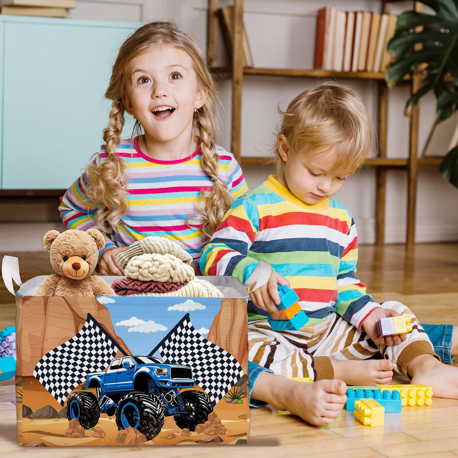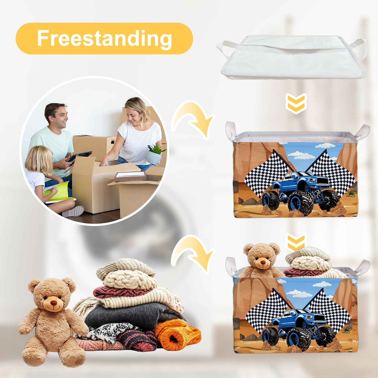 Excavator Foldable Storage Basket with Handle, Waterproof Organizer for Toys and Clothes, Excavator Portable Box for Nursery Game Room, Gifts Container for Boys Girls, Toy Storage Box for Party Decor