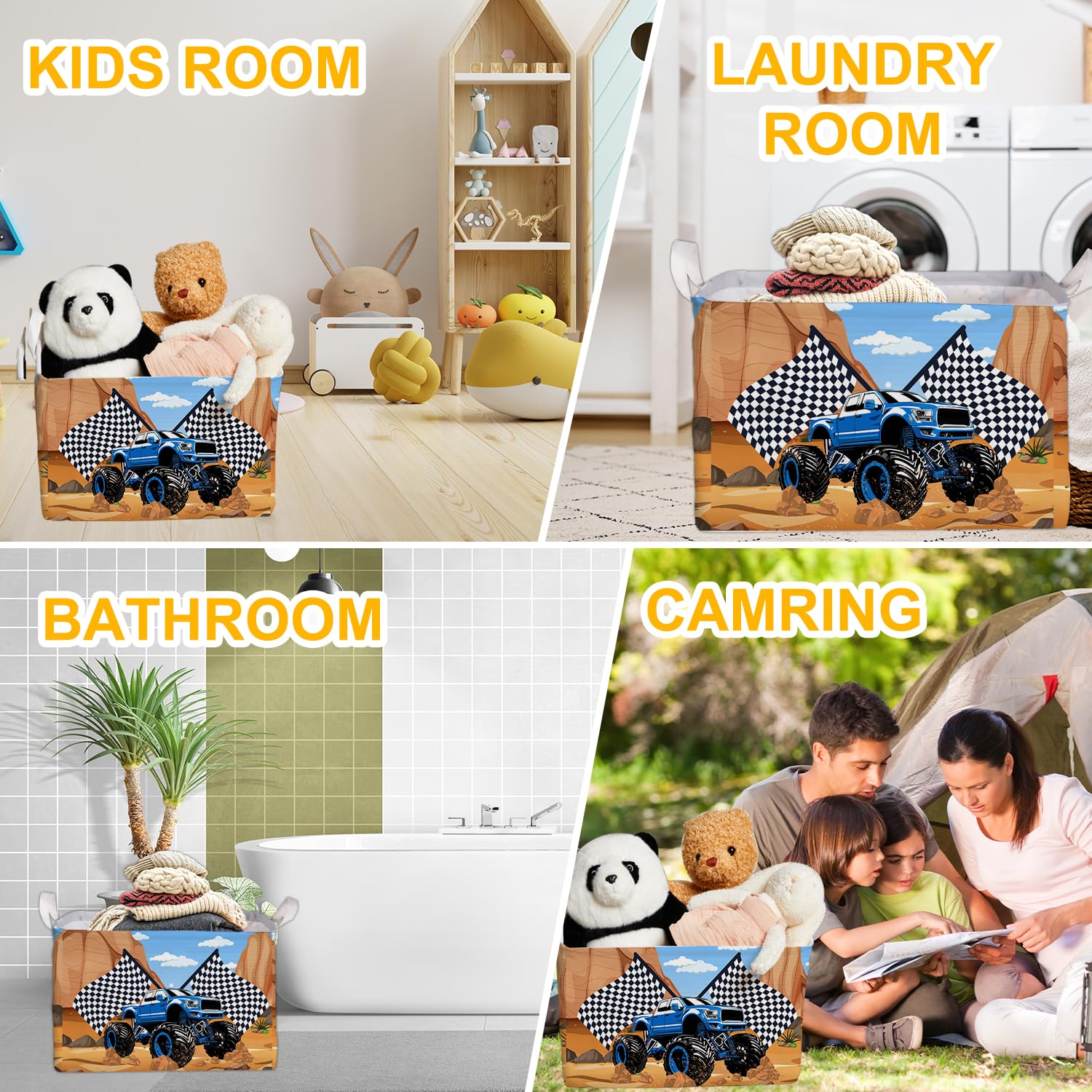 Fun Digger Design: Featuring a bold and colorful digger print, this storage basket adds a playful vibe to any space, perfect for boys and girls who love trucks and digging fun.