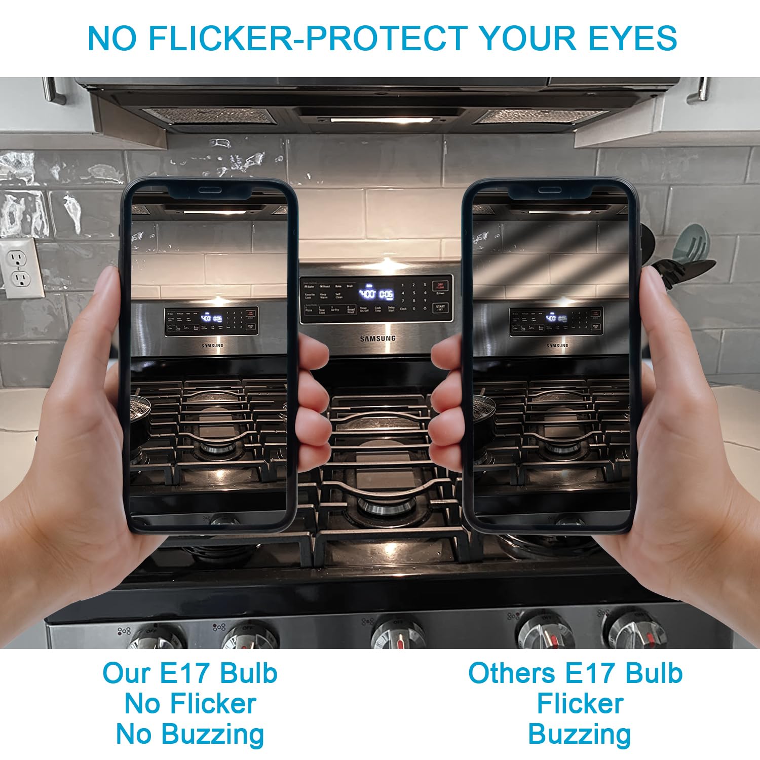 Vibrant Natural White Light: Upgraded IC + led chips, avoid visible flicker. 4000K natural white light, high color rendering index CRI 85ra, present object color vividly and clearly, makes your food look yummy when cooking.