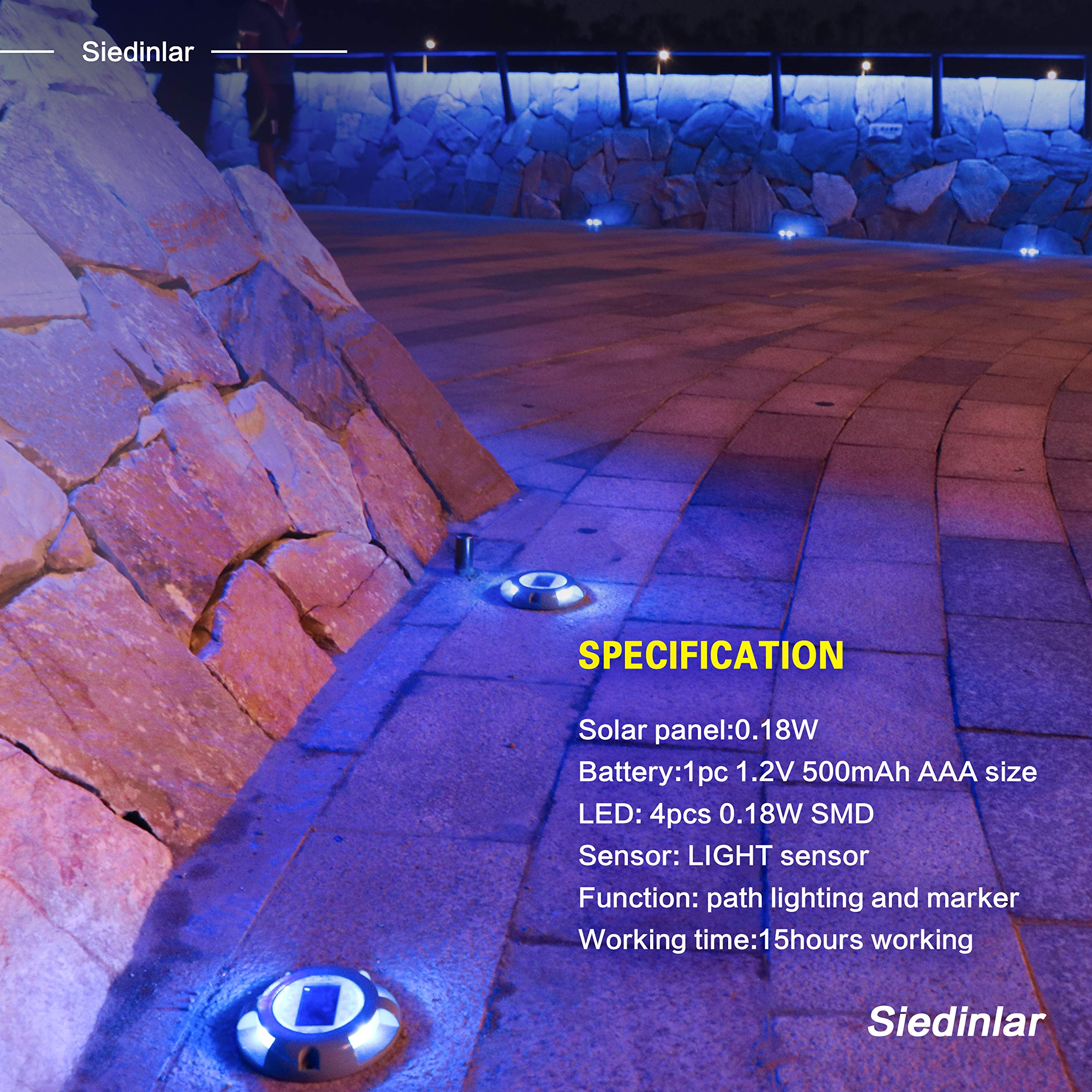 【Elegant Design】Siedinlar Solar deck lights is made of aluminium alloy, solar panels, led, and storage battery. With its pressure resistance design, no need for hand controlling, simple, safe.