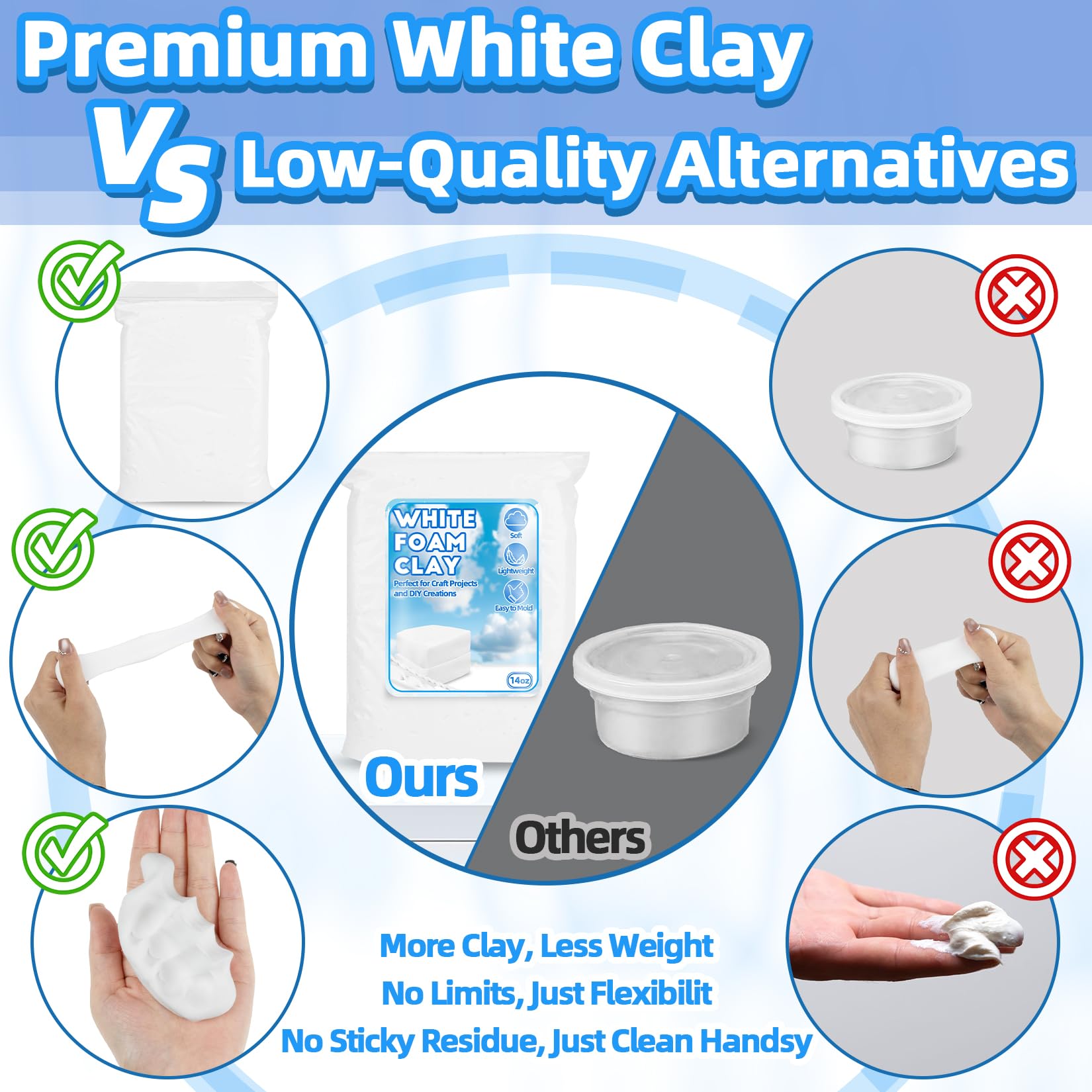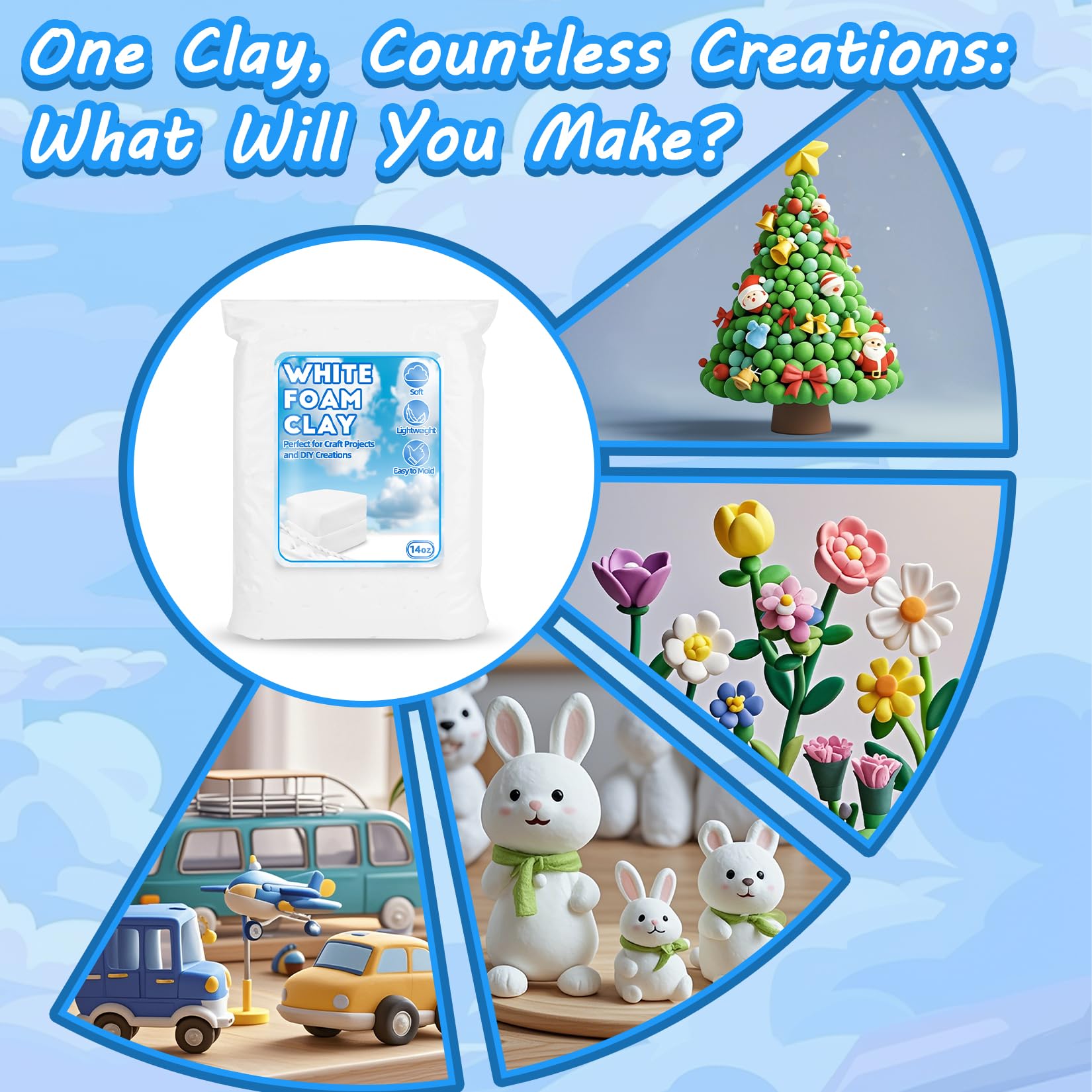 Modeling Foam Clay: Soft, squishy, and easy to shape, this modeling foam and color clay offers a clay kit for adults and beginners alike, sparking creativity and providing hours of hands-on fun Made For Hands: The air clay for adults is smooth and moldable like cosclay, perfect for shaping, sanding, and coloring. This craft clay makes every project easier and more enjoyable Pure And Mixable Colors: Starting as white model magic, this clay foam can be blended into endless shades. From model magic clay white to custom tones, you can mix, match, and decorate for unique masterpieces Versatile Usage Scenarios: Whether used as a clay kit for school projects, parties, or workshops, this clay kit keeps everyone engaged. With modeling foam and craft clay in one set, it inspires teamwork and creativity everywhere. It is not intended for children under 12 years old and small parts, keep away from children under 12