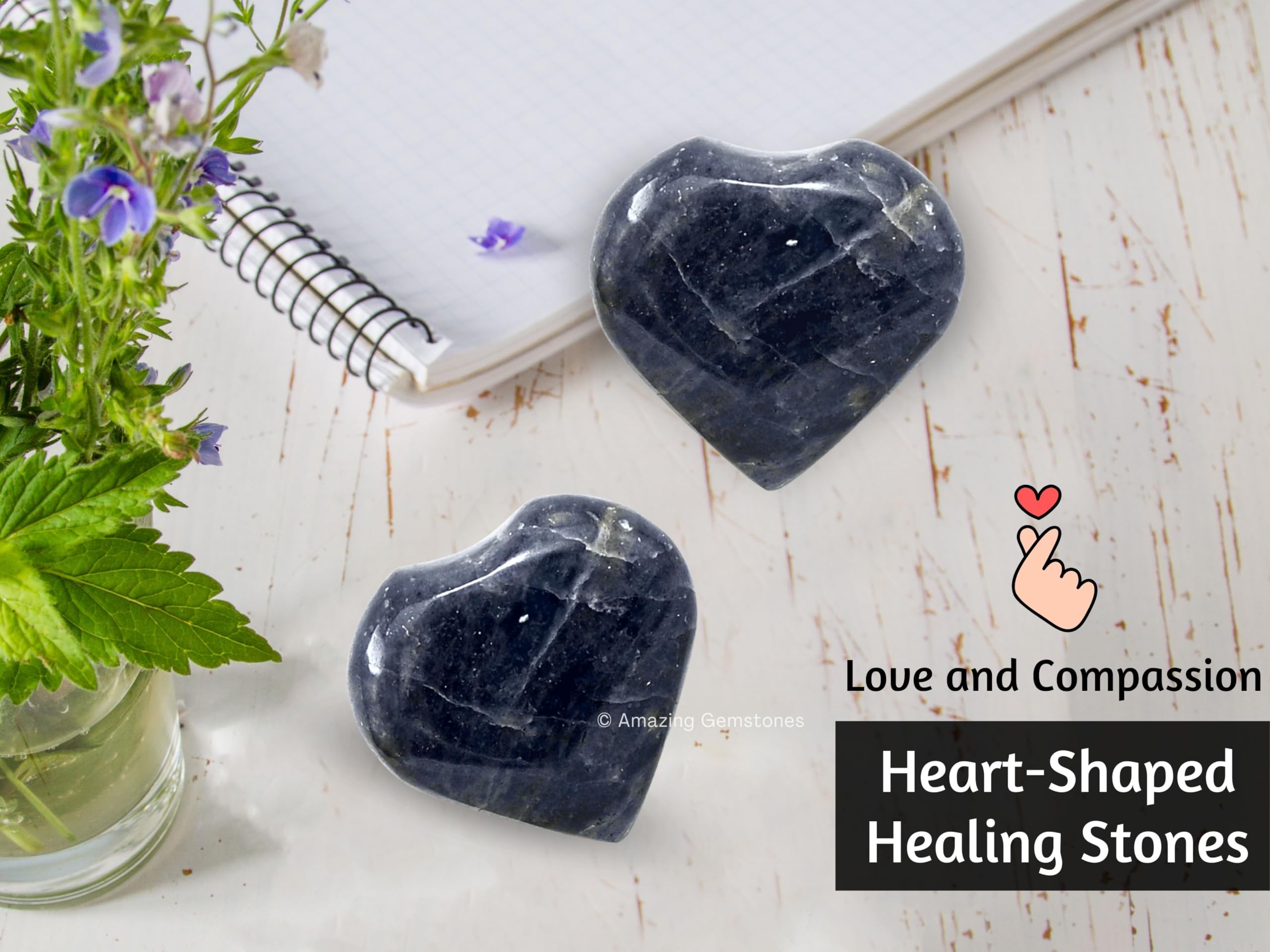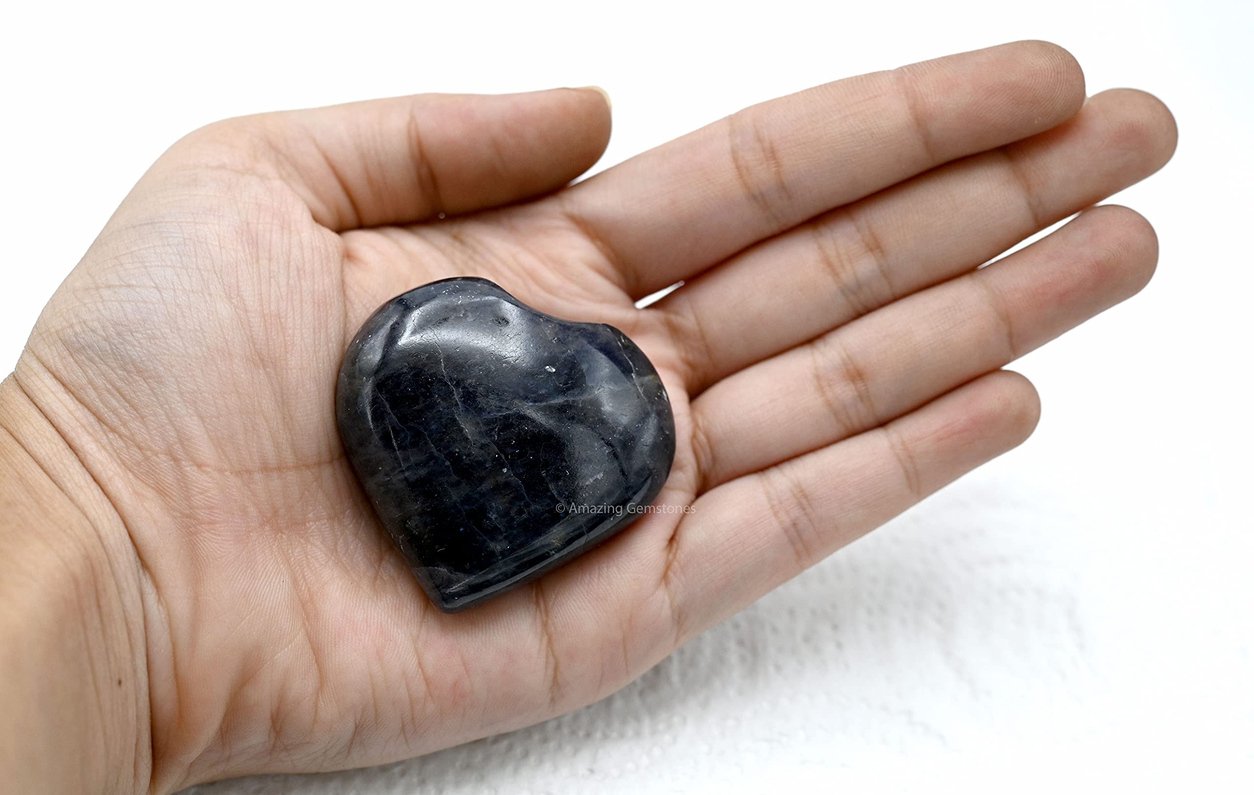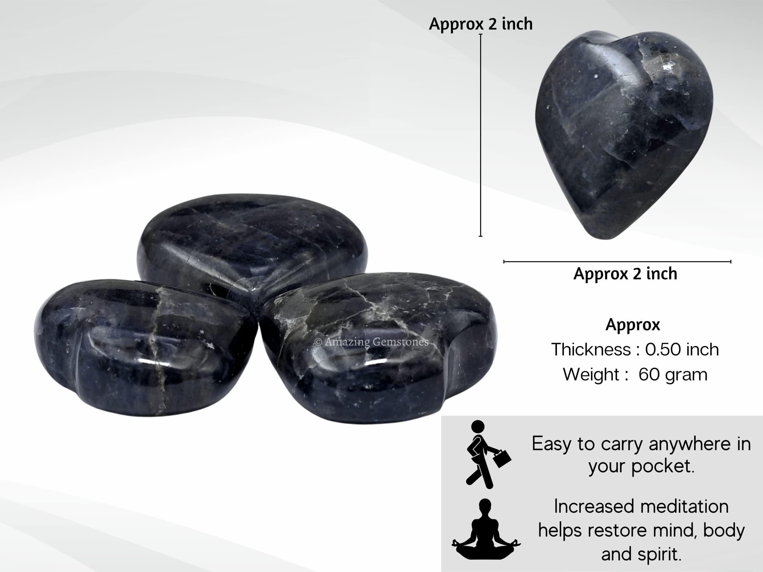 Iolite Crystal Heart Palm Worry Stones are polished heart shaped stones that can be used for Back, Neck, Face and Feet Massage therapy, Chakra Balancing, Reiki Healing, Crystal Grid Meditation and many other esoteric healing practices