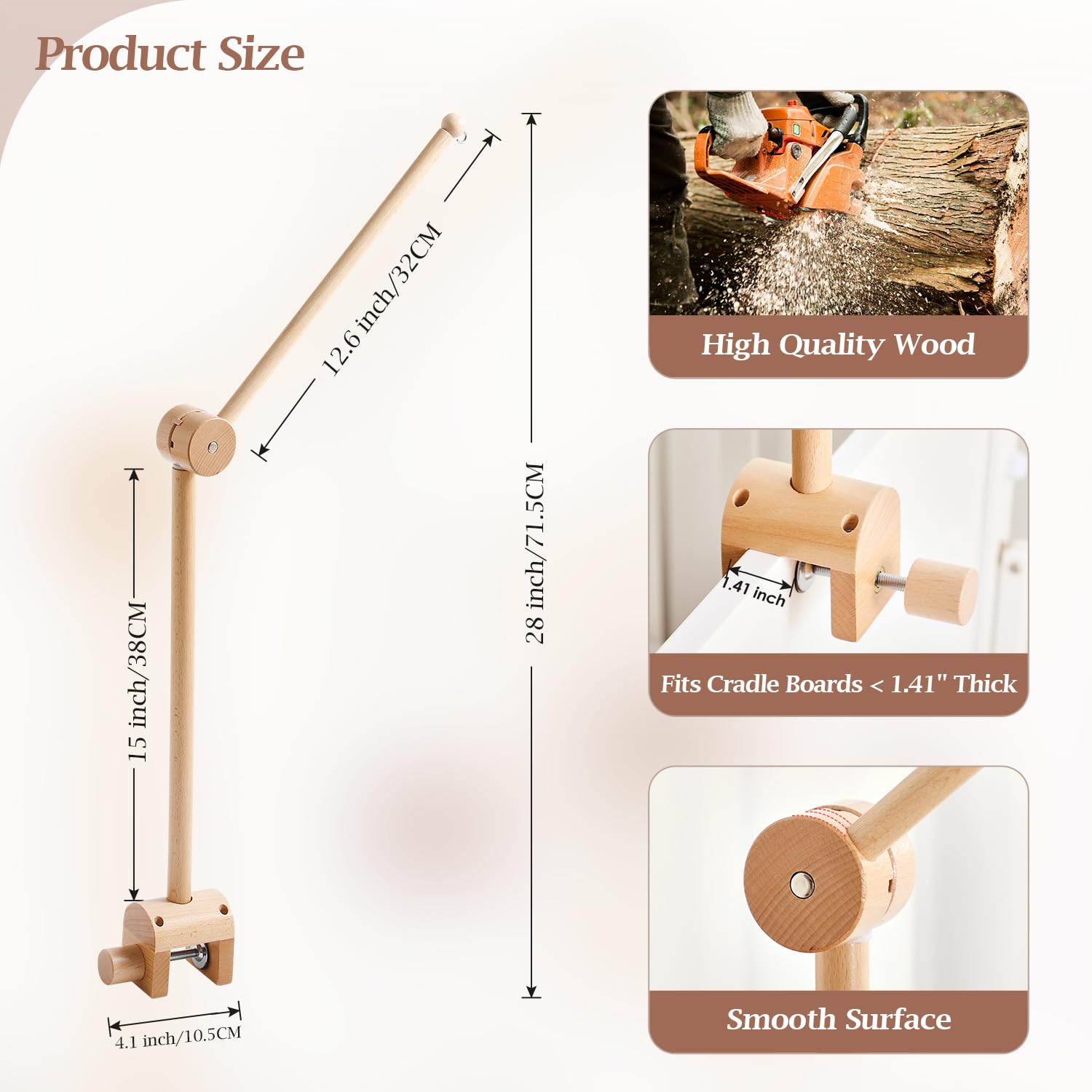 🌲Heirloom Quality: This crib mobile arm is made of natural beech wood, polished smooth and burr-free that ensures safety for baby. The eco-friendly water-based paint increases the life and gloss of the baby arm, and will be a great addition to your baby crib and nursery.