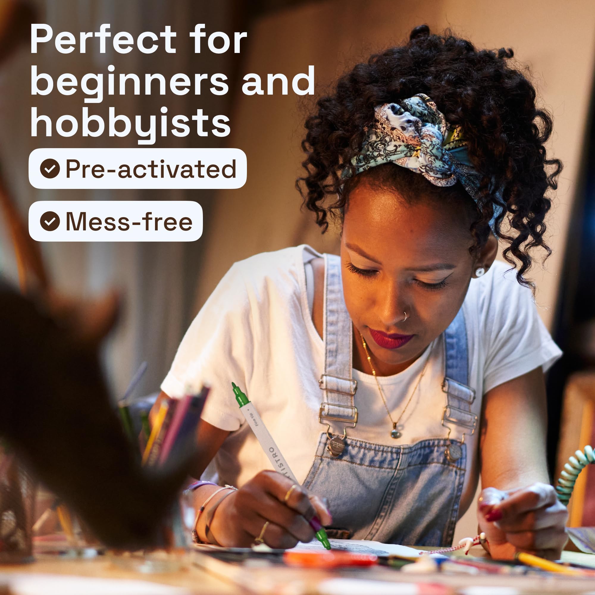 READY TO USE, NO PREP NEEDED: Pre-activated cotton nibs mean no shaking or pressing. Start creating instantly with smooth-flowing, fast-drying acrylic ink that resists smudging.