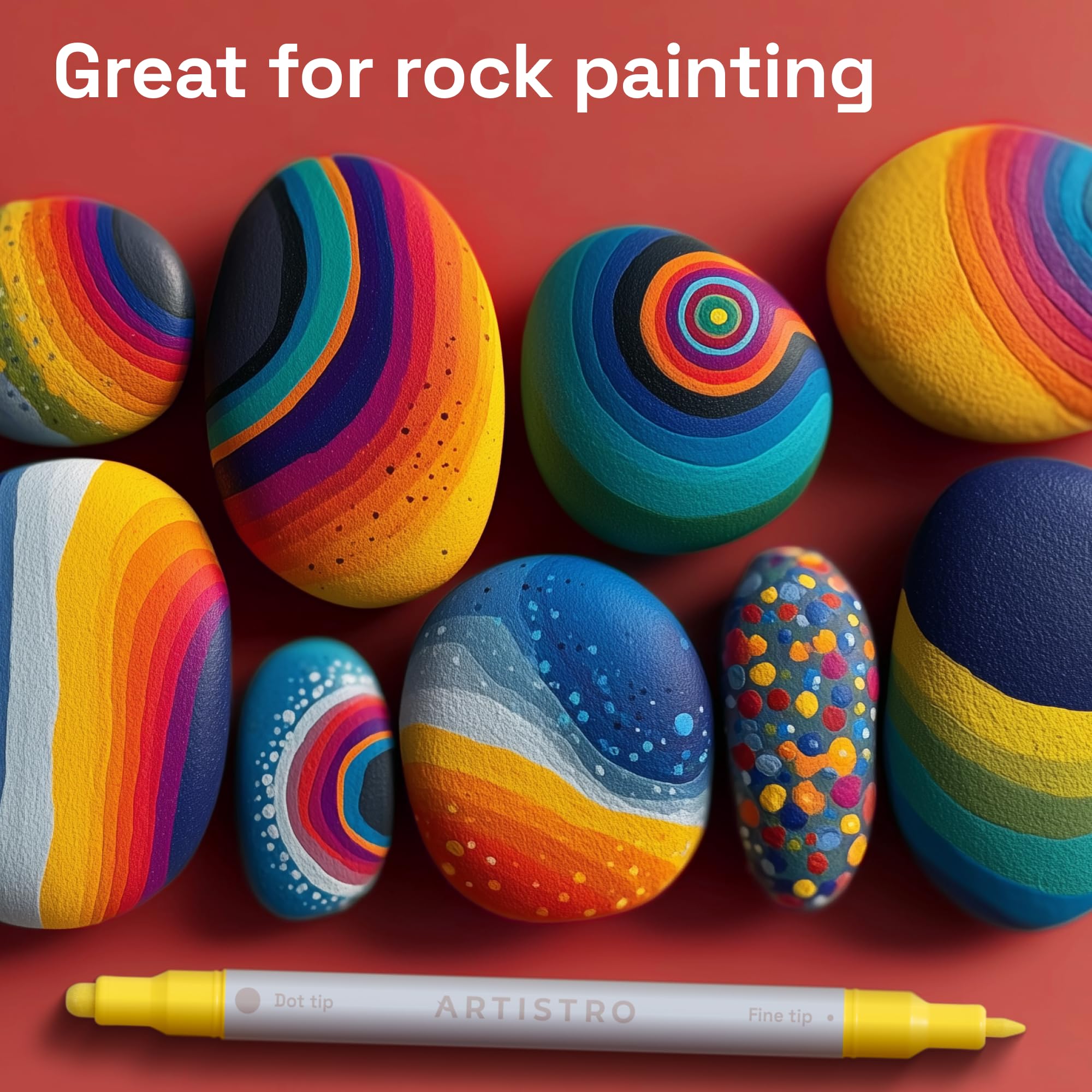 WORKS ON NEARLY ANY SURFACE: These multi-surface acrylic paint markers glide over paper, canvas, fabric, wood, glass, metal, ceramic, and rock with fade-resistant, even coverage.