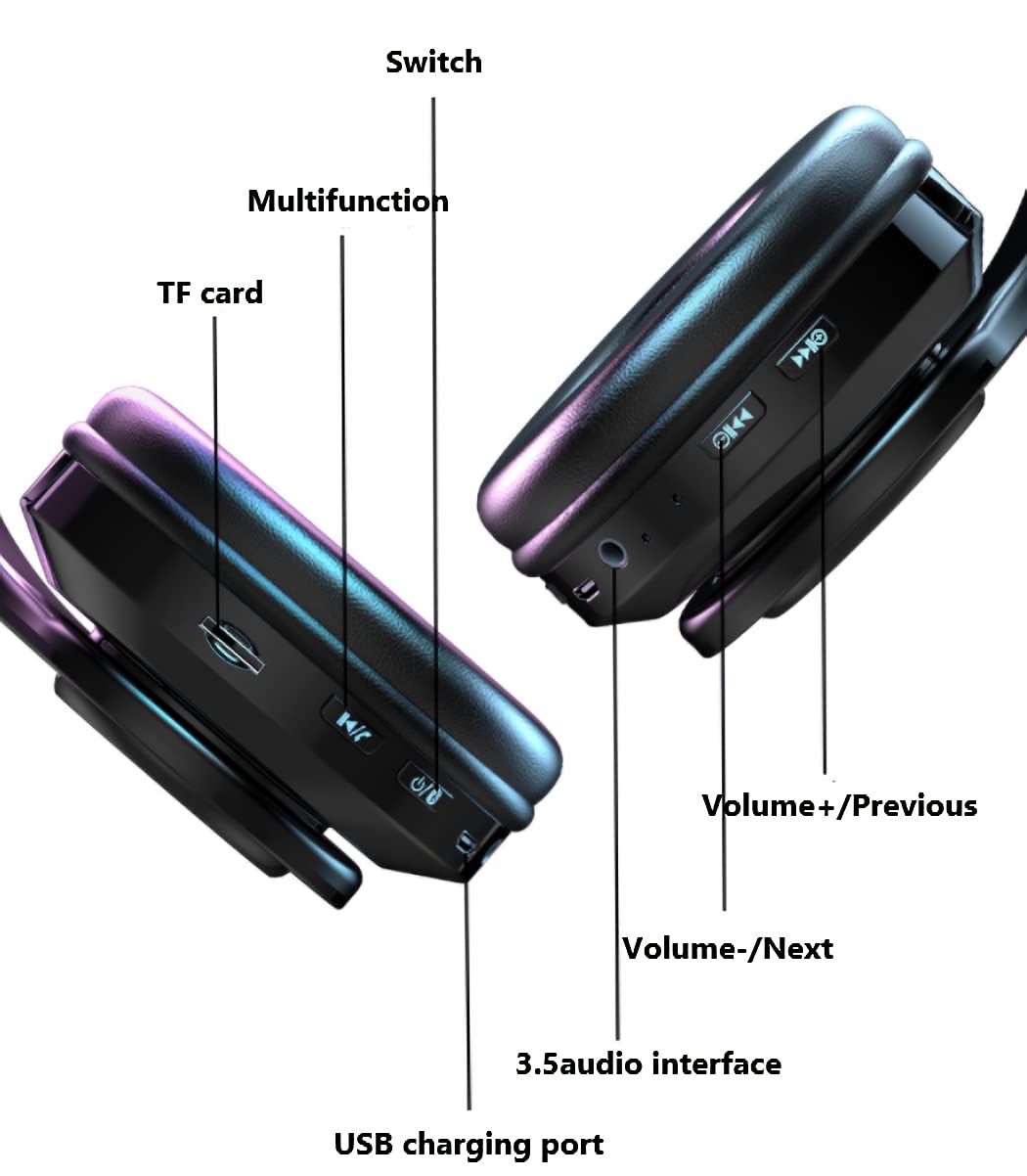 Foldable-space saving and easy to carry.Colorful lights-colorful gradient light gives you a gorgeous feeling.Built-in microphone-reduce noise during call;hands-free calls.