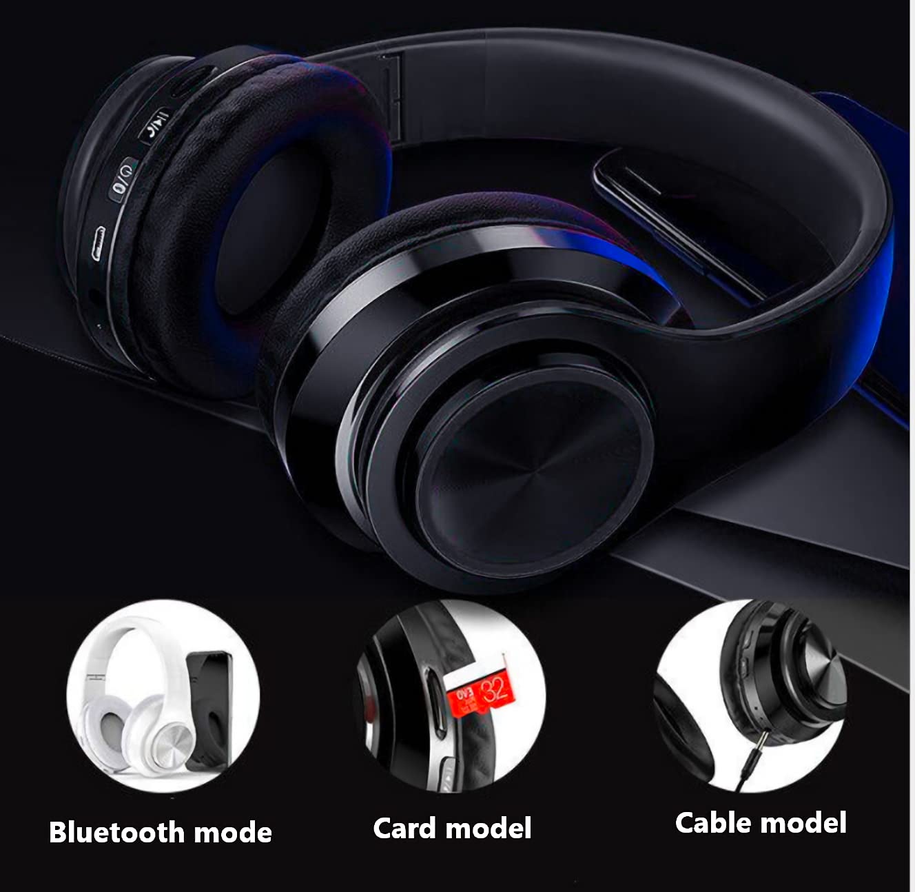 Three ways to connect devices:Bluetooth model/Cable model/TF card model(Headphones have AUX plugs for wired connections,AUX audio cable is configured.)
