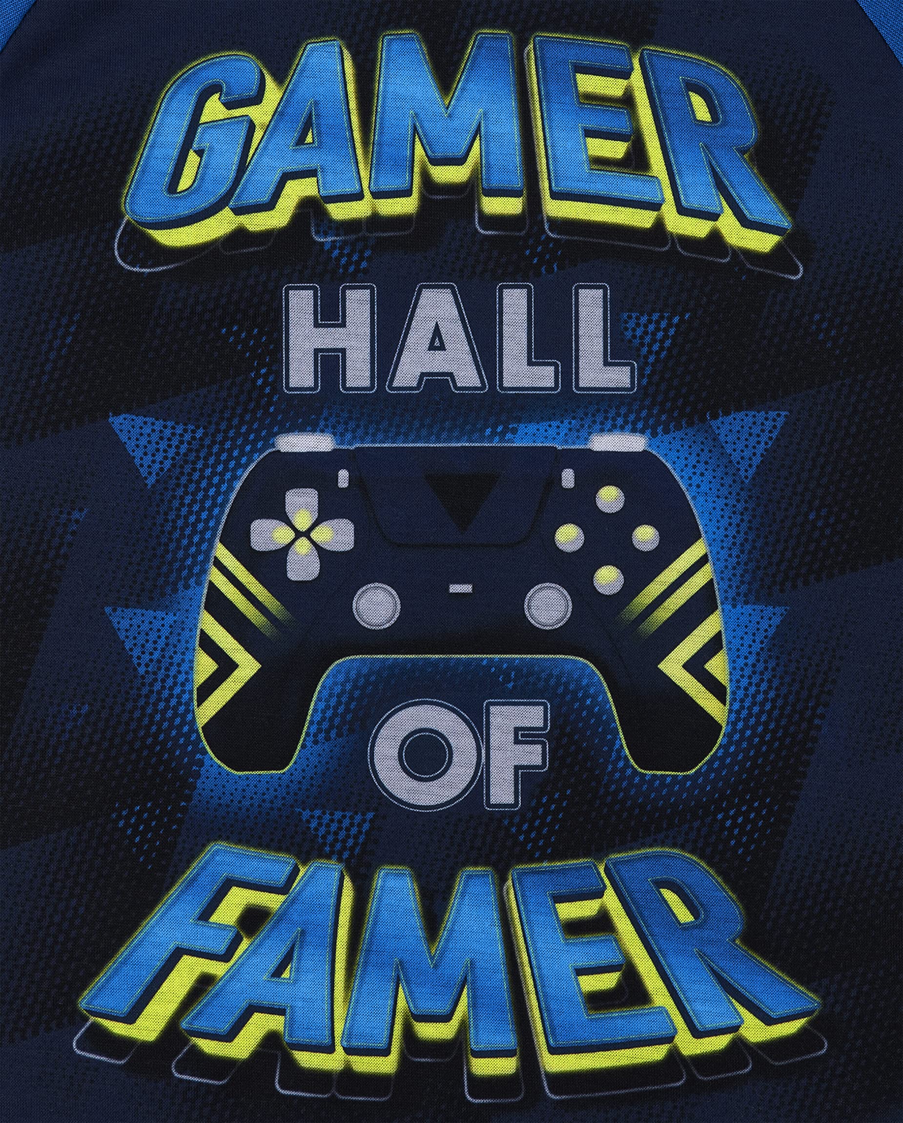 PAJAMA TOPS — Features long raglan sleeves and rib-knit crew neck: 1 top with 'Gamer Hall Of Famer' with video game controller graphic design at front; 1 top with video game controller graphic design at front
