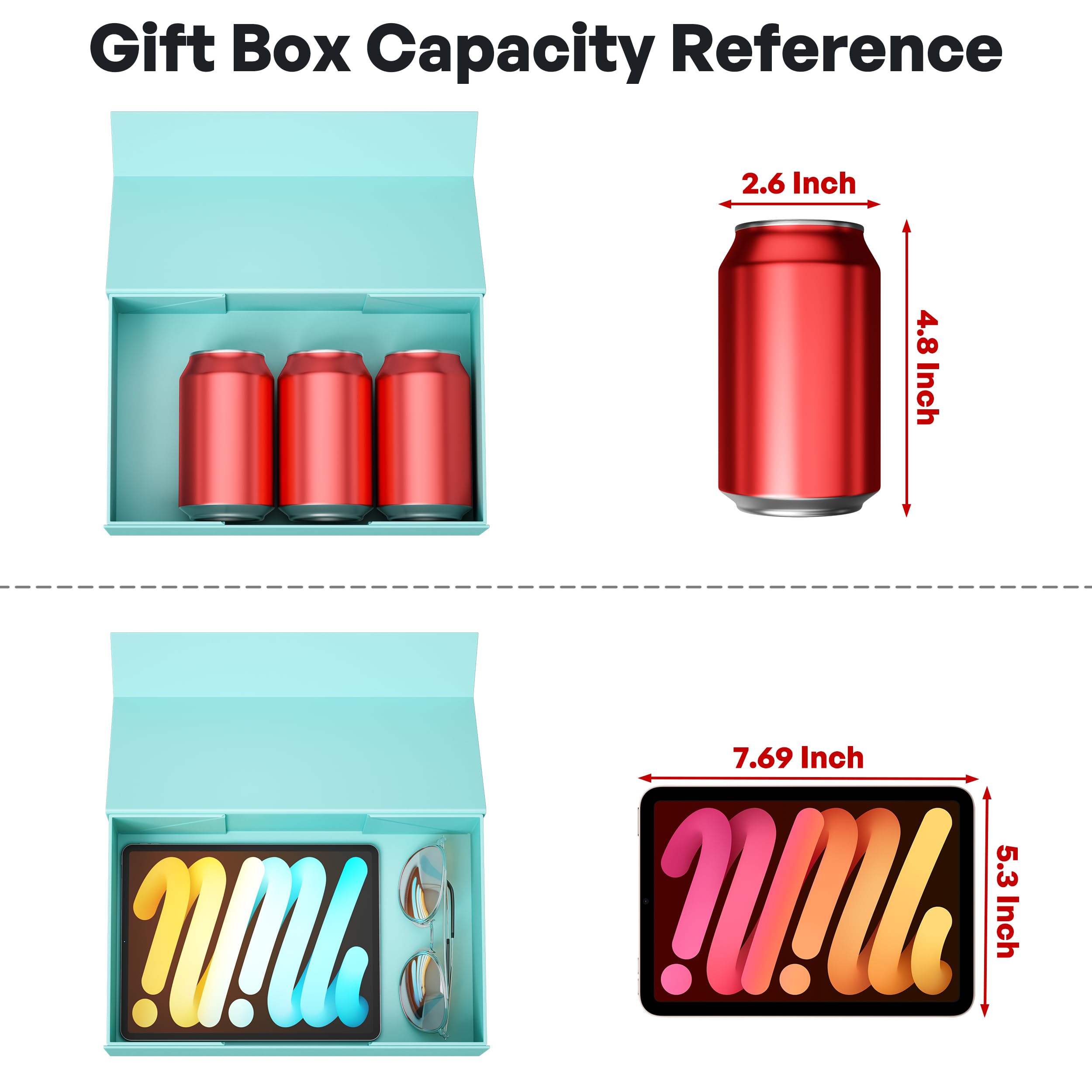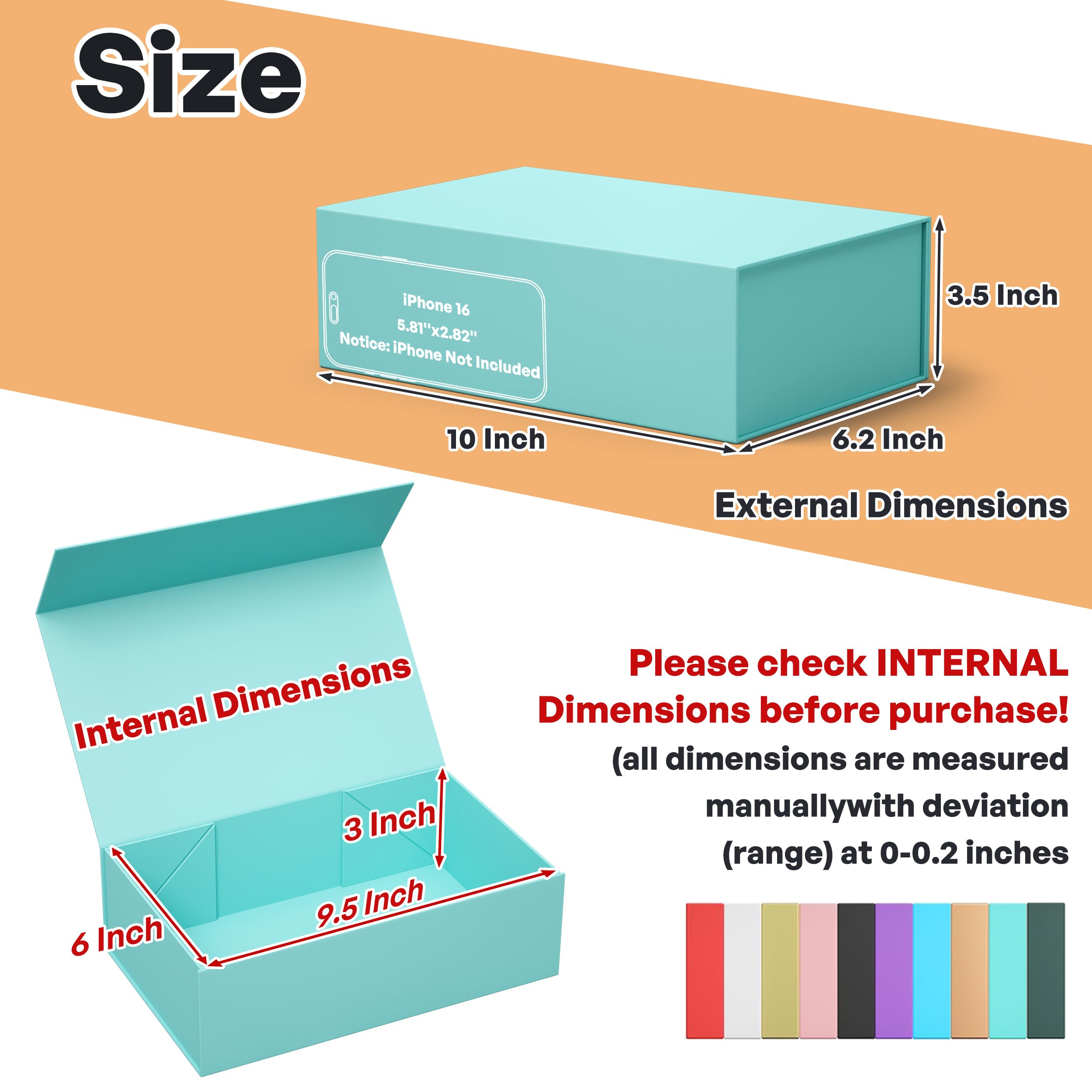 🎁SlZE - Gift boxes for presents External dimensiong 10x6.2x3.5 inches (Internaldimensions are 9.5x6x3 inches),Collapsible gift box can holdchocolates, candies, cosmetics, perfumes, jewelry, candles, cups, souvenirs orsmaller clothing accessories and more.(all dimensions are measured manuallywith deviation (range) at 0-0.2 inches)