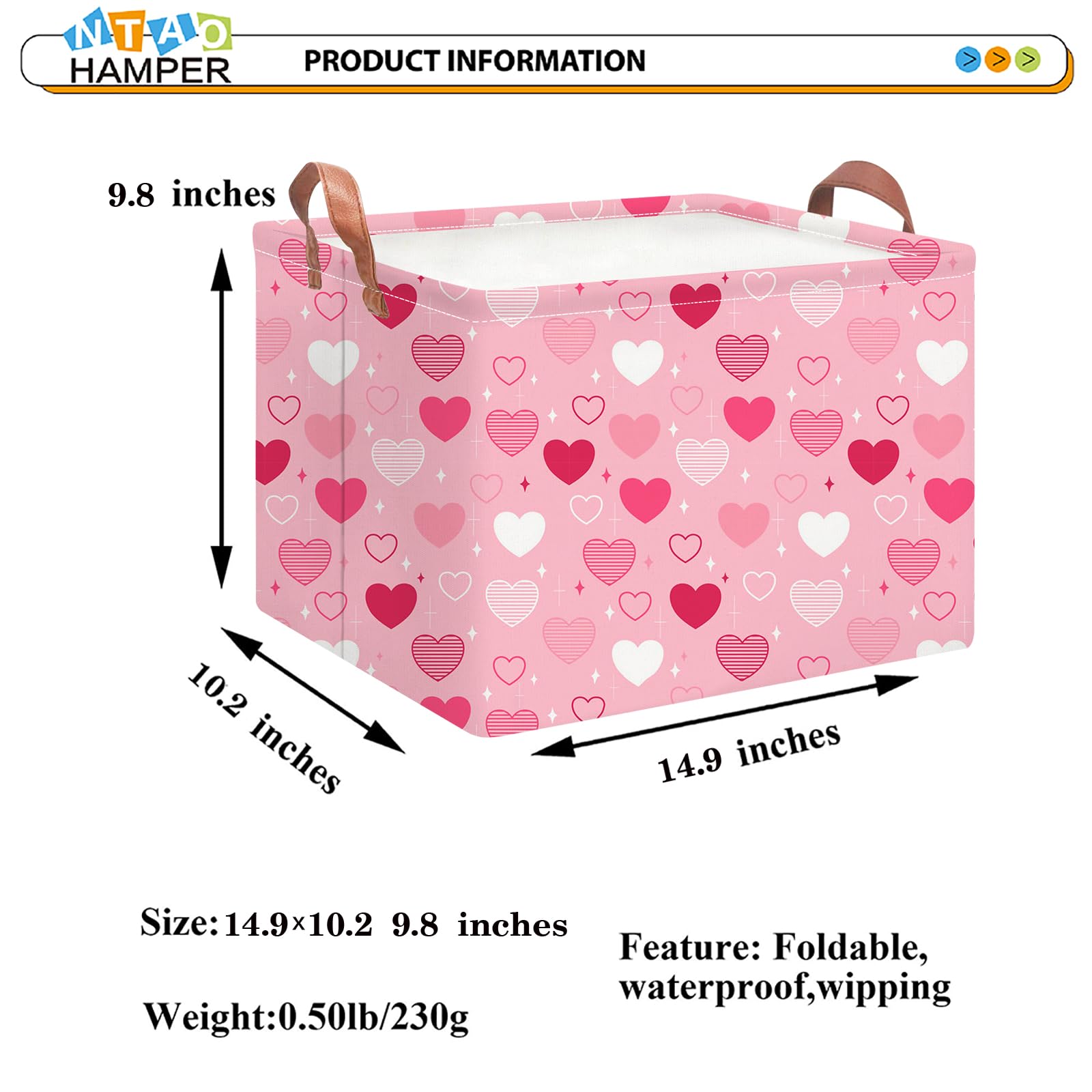 LAUNDRY BASKET SIZE:14.9(L)×10.2(W)×9.8(H)inches,Perfect size for toys organizer,toy bin,pet's stuff storage,clothes basket,gifts basket.It can be used in camping,student apartment,closet,shelves and kitchen.
