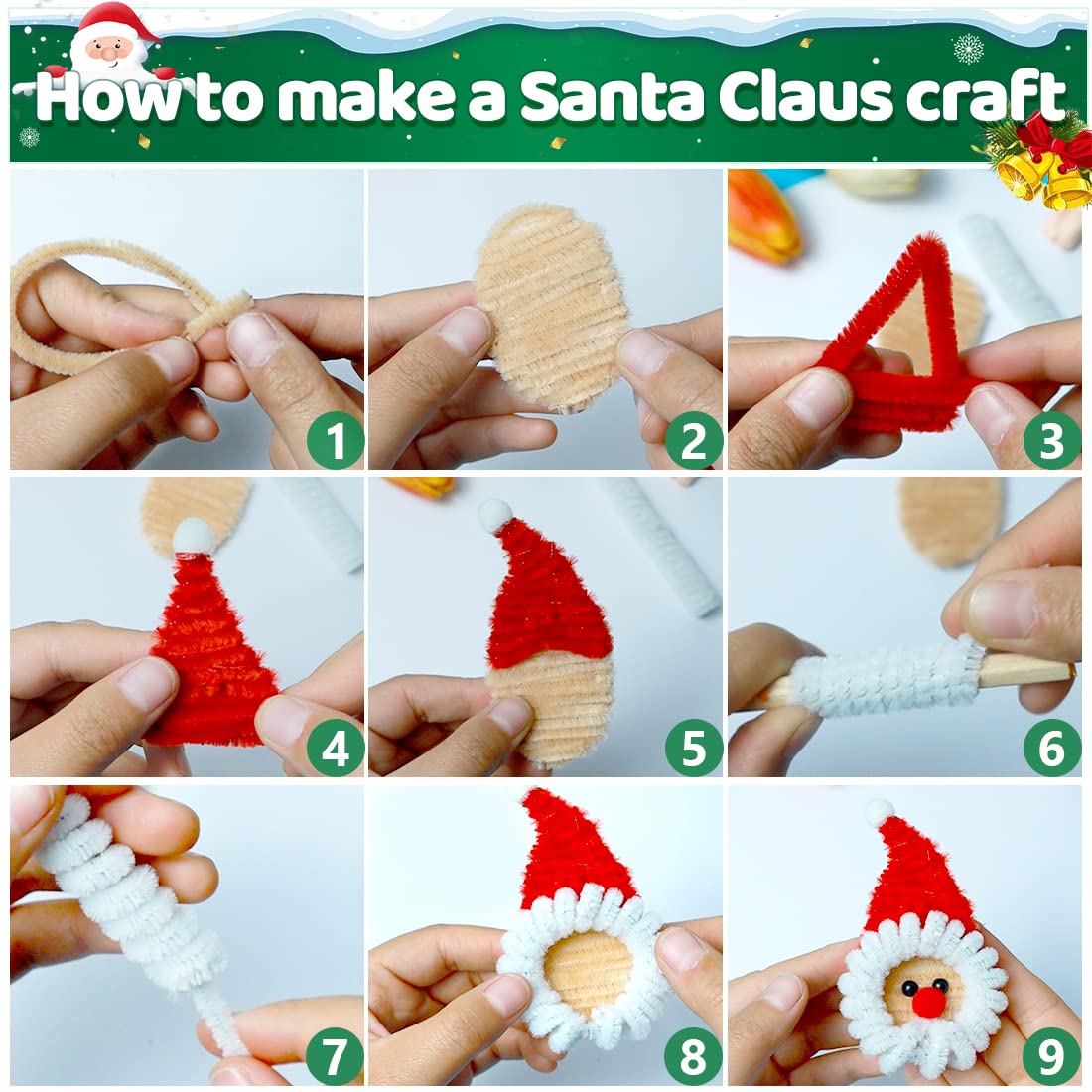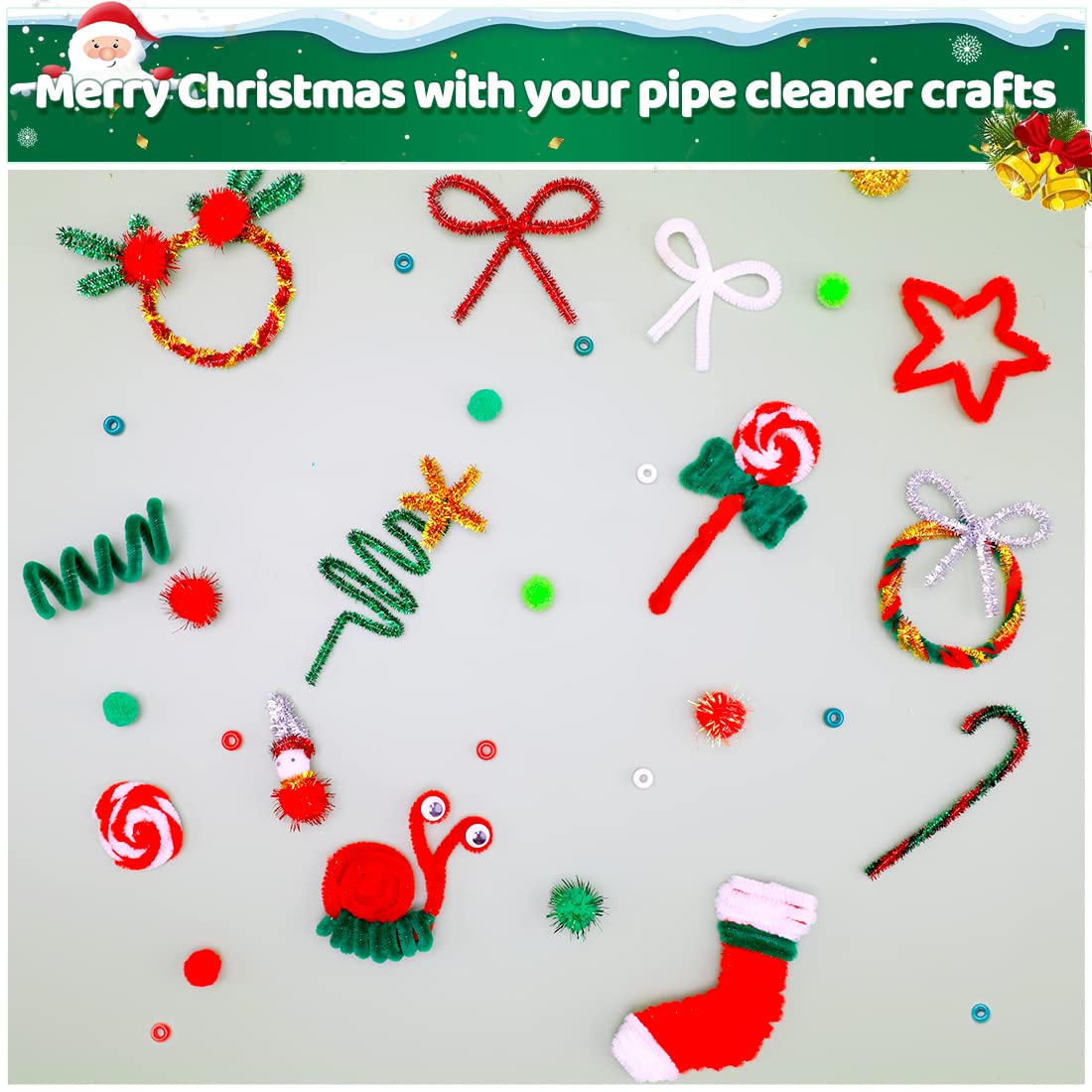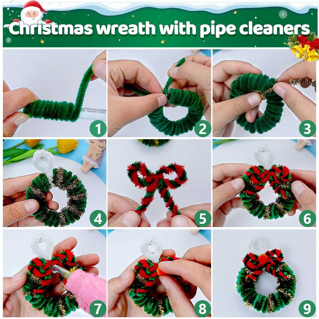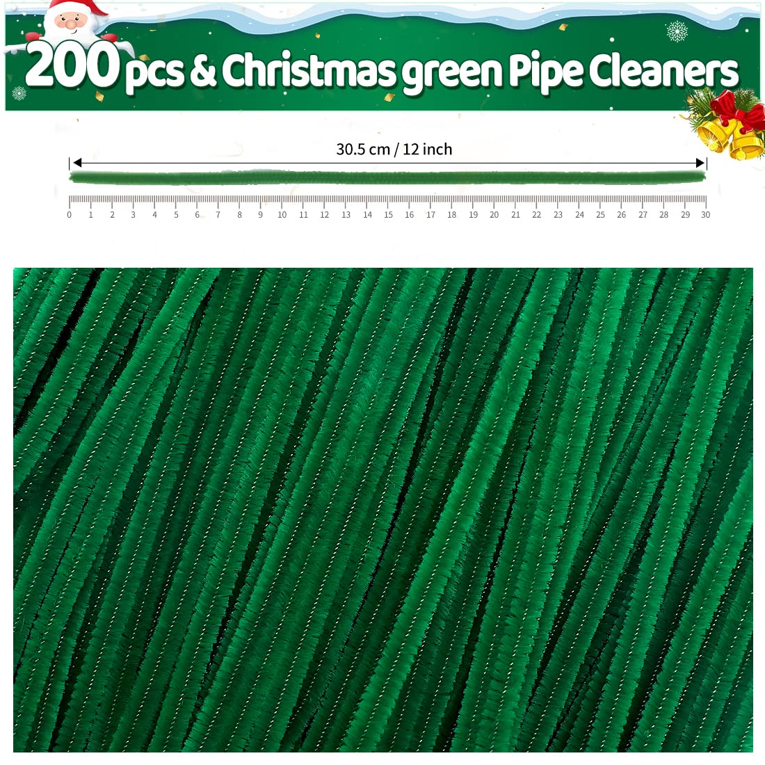 [Valuable pack] 200pcs of Christmas green pipe cleaners in each package, the large number meets the need of making crafts. Nice for making all kinds of pipe cleaner crafts.