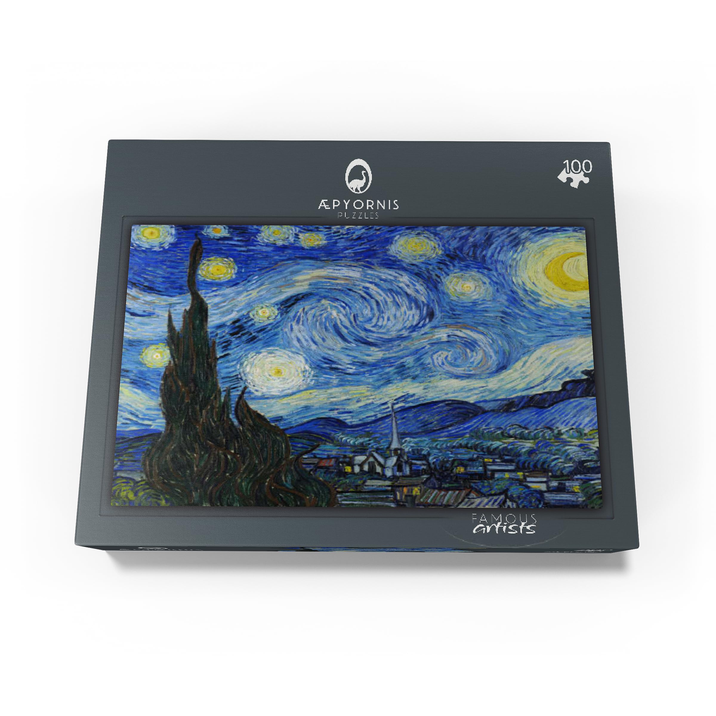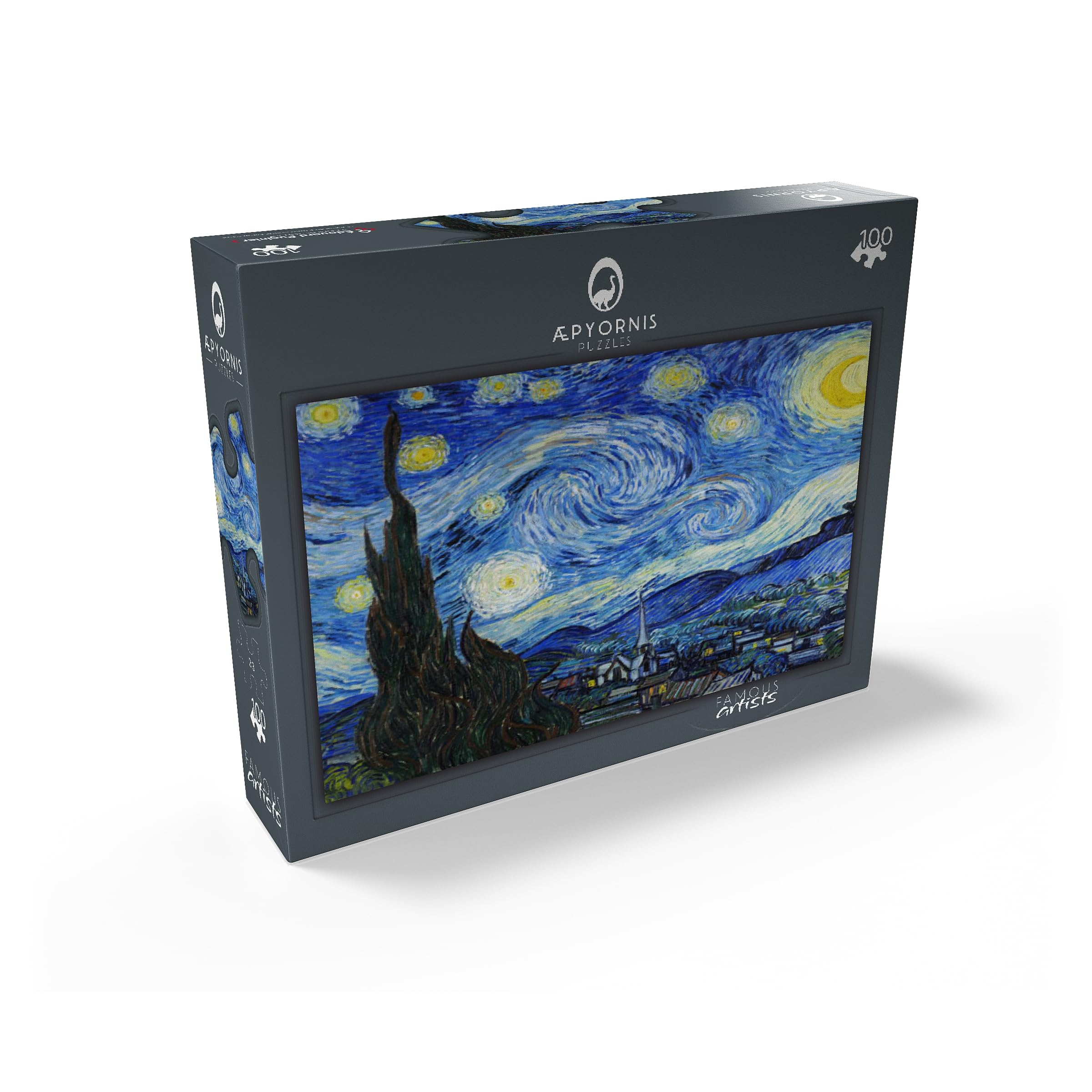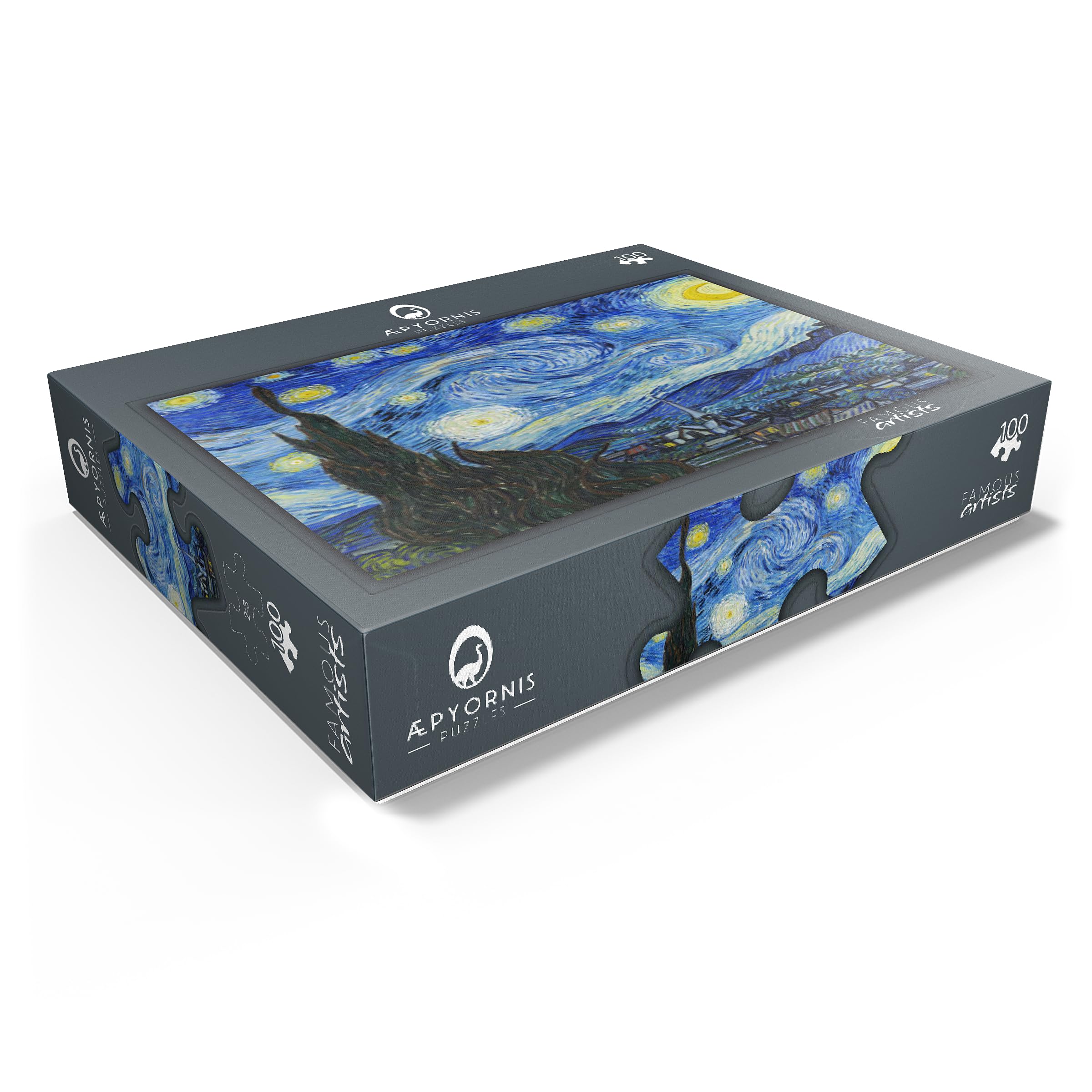 A reference poster, approximately 13x17.5 inches in size, is included to assist with puzzle solving. Puzzle design by: Vincent van Gogh