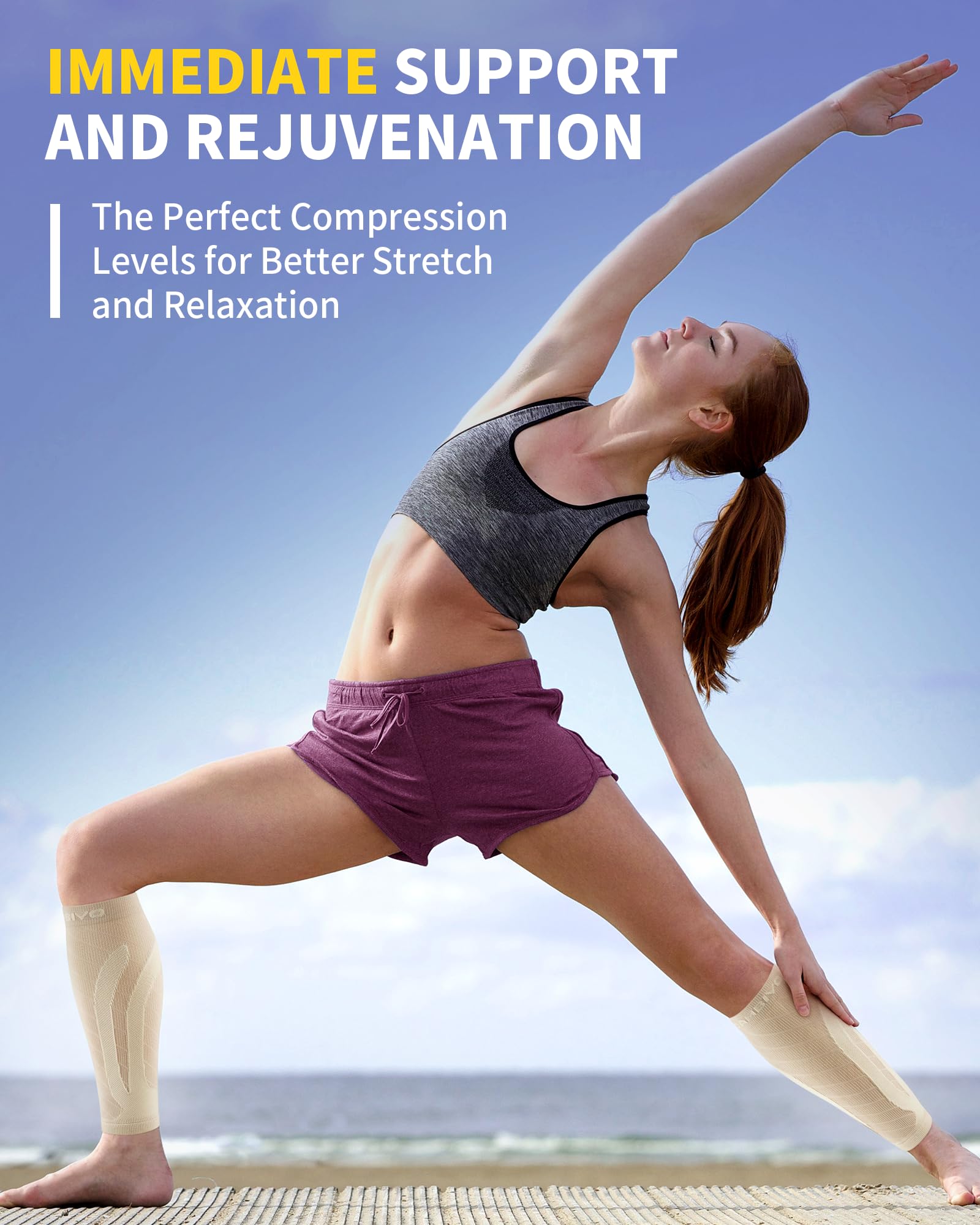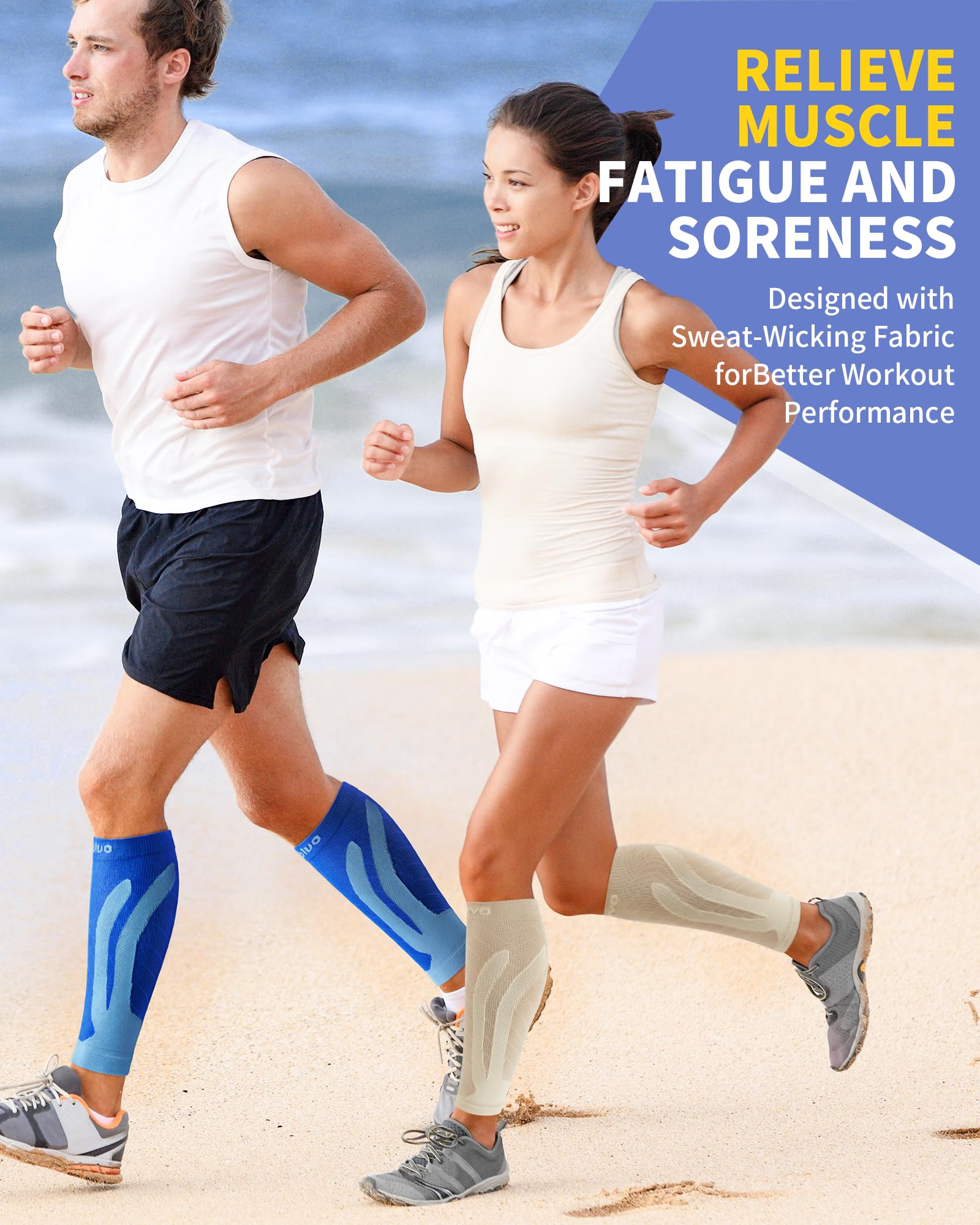 Varicose Veins Treatment for Legs - Leg compression sleeve promotes circulation by applying pressure on your lower legs and pushing blood back toward the heart; calf sleeves help reduce pain from swelling, varicose veins, and leg cramps; shin guard sleeves for shin splints relief; the compression socks without feet offer greater flexibility and versatility; easier to wear than full compression socks while allowing your toe and ankle to breathe and stay cool