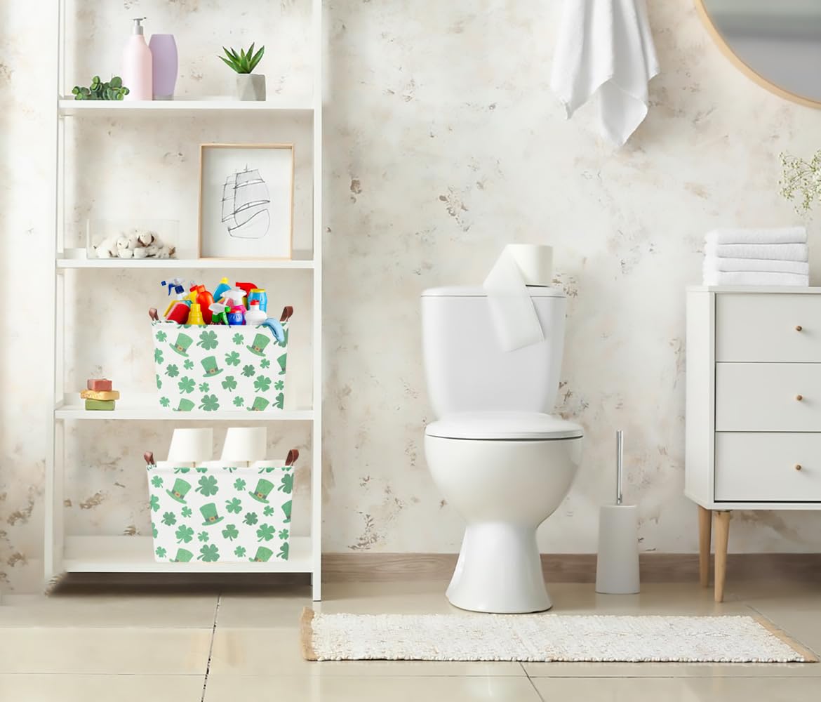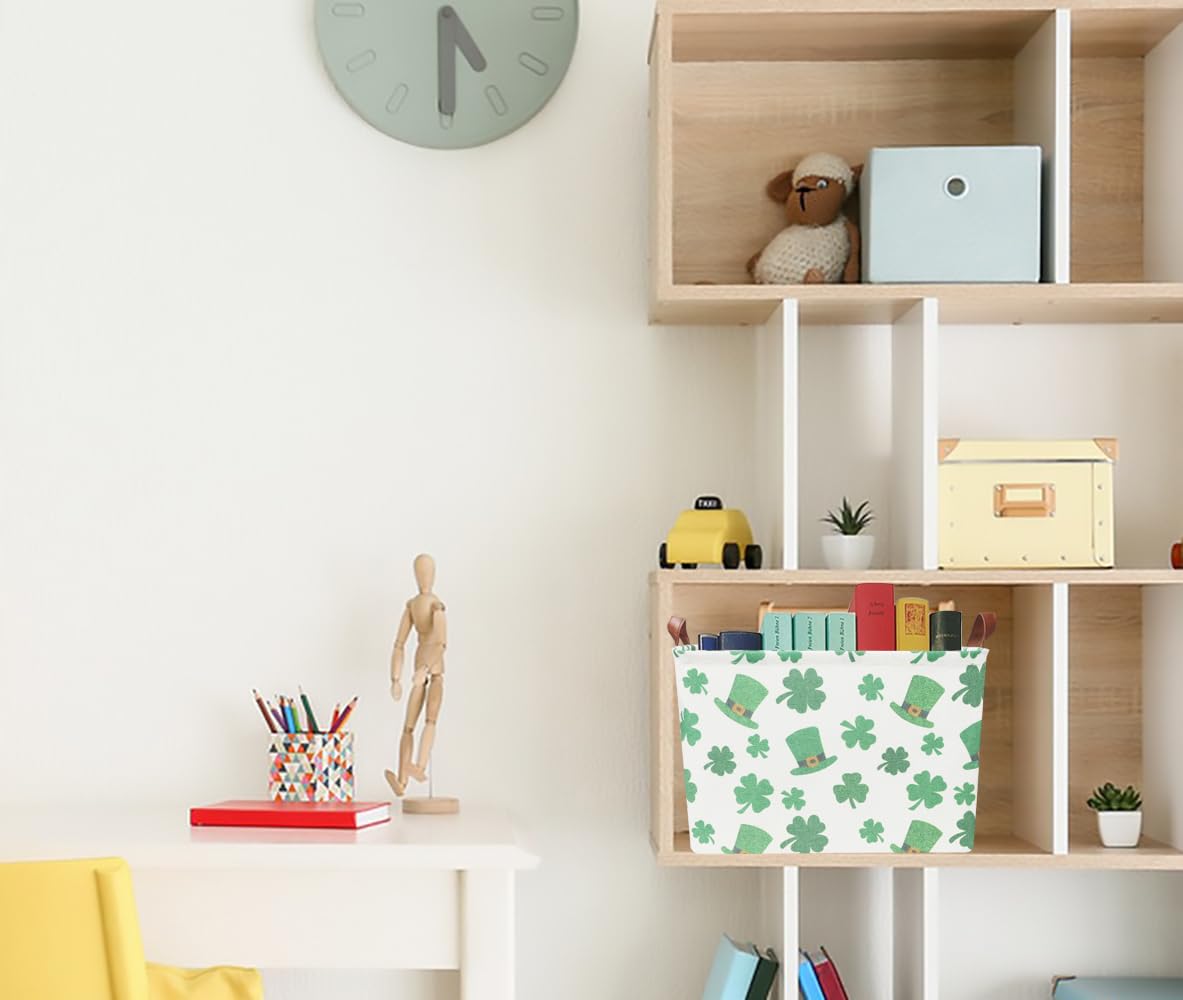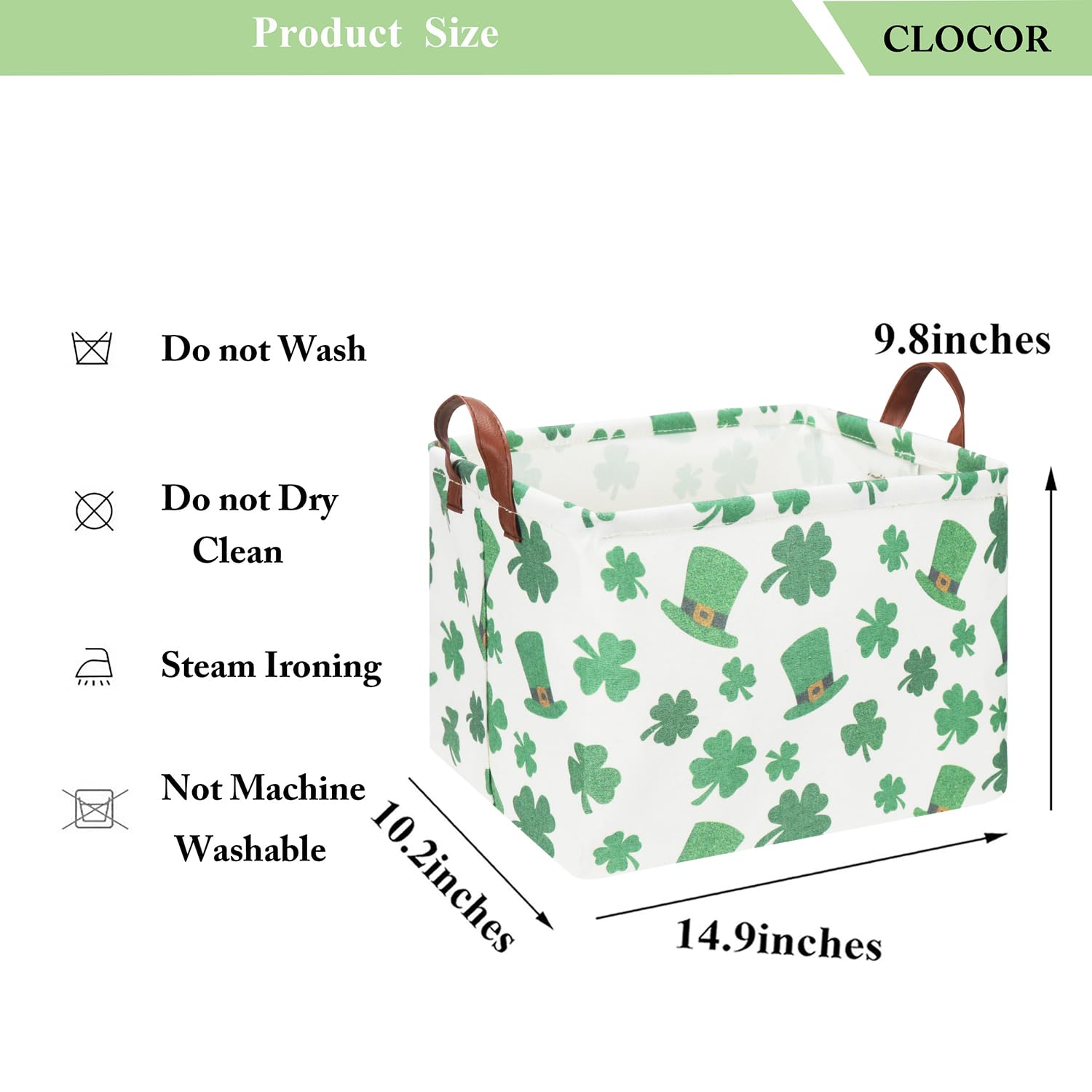 DIMENSION:Storage basket size 14.9(L)×10.2(W)×9.8(H)inches,perfect size for St. Patrick's Day Gift Basket,Green Easter Bakset for eggs hunting.