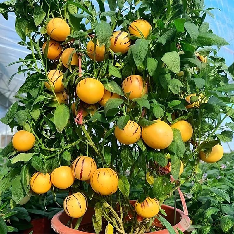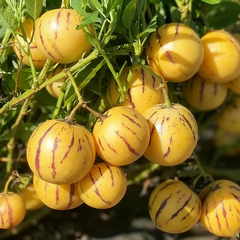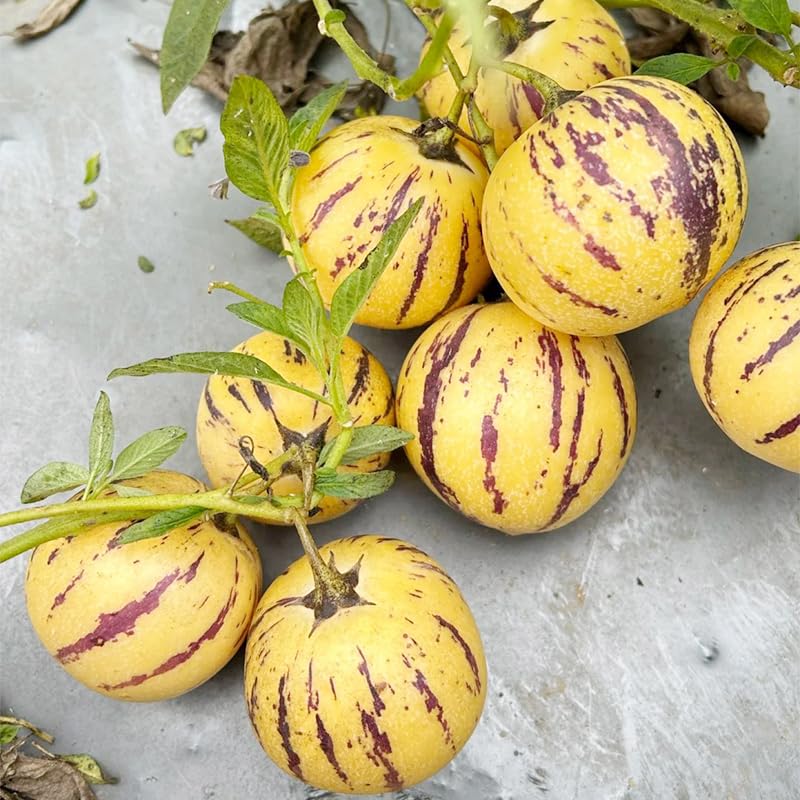 With its attractive foliage and strikingly streaked fruit, the Pepino Melon plant adds ornamental value. It is suitable for garden beds and also grows well in large containers on patios or balconies.