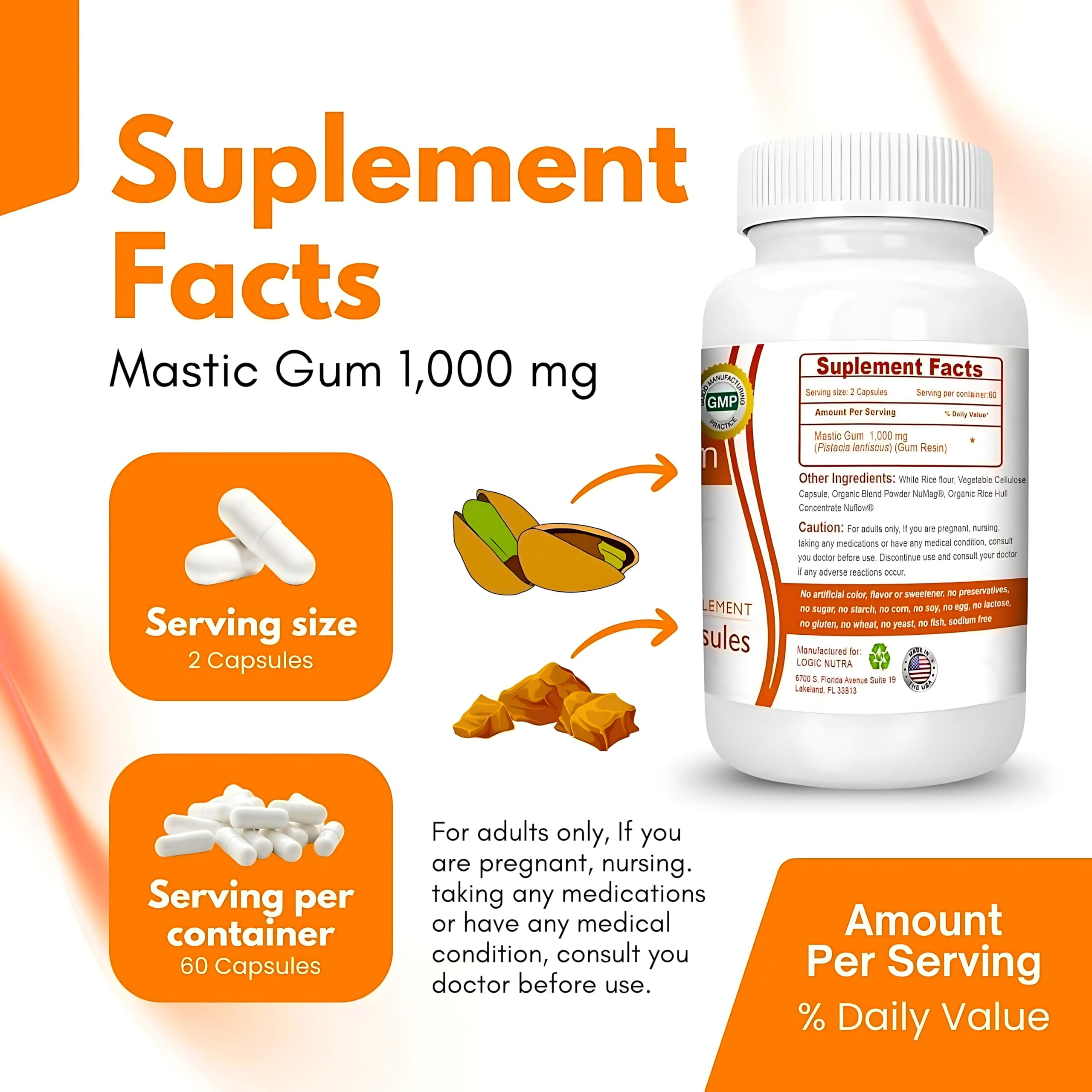 ✅PURE MASTIC GUM: Logic Nutra takes pride in offering a premium-grade mastic gum supplement, ensuring that each serving delivers the full potential of this ancient remedy. Sourced from the resin of the mastic tree (Pistacia lentiscus), our pure mastic gum undergoes rigorous quality control measures to guarantee its purity and potency.
