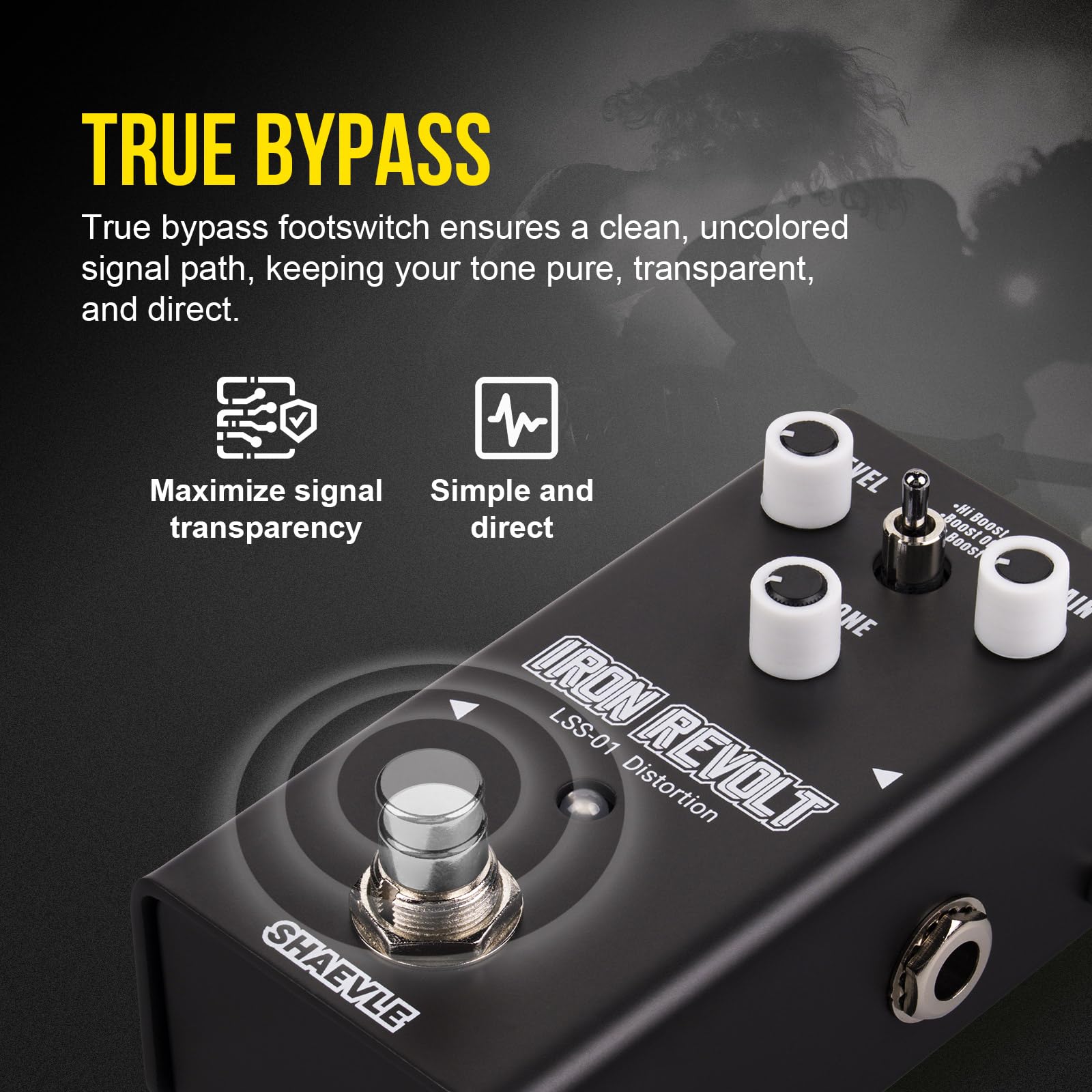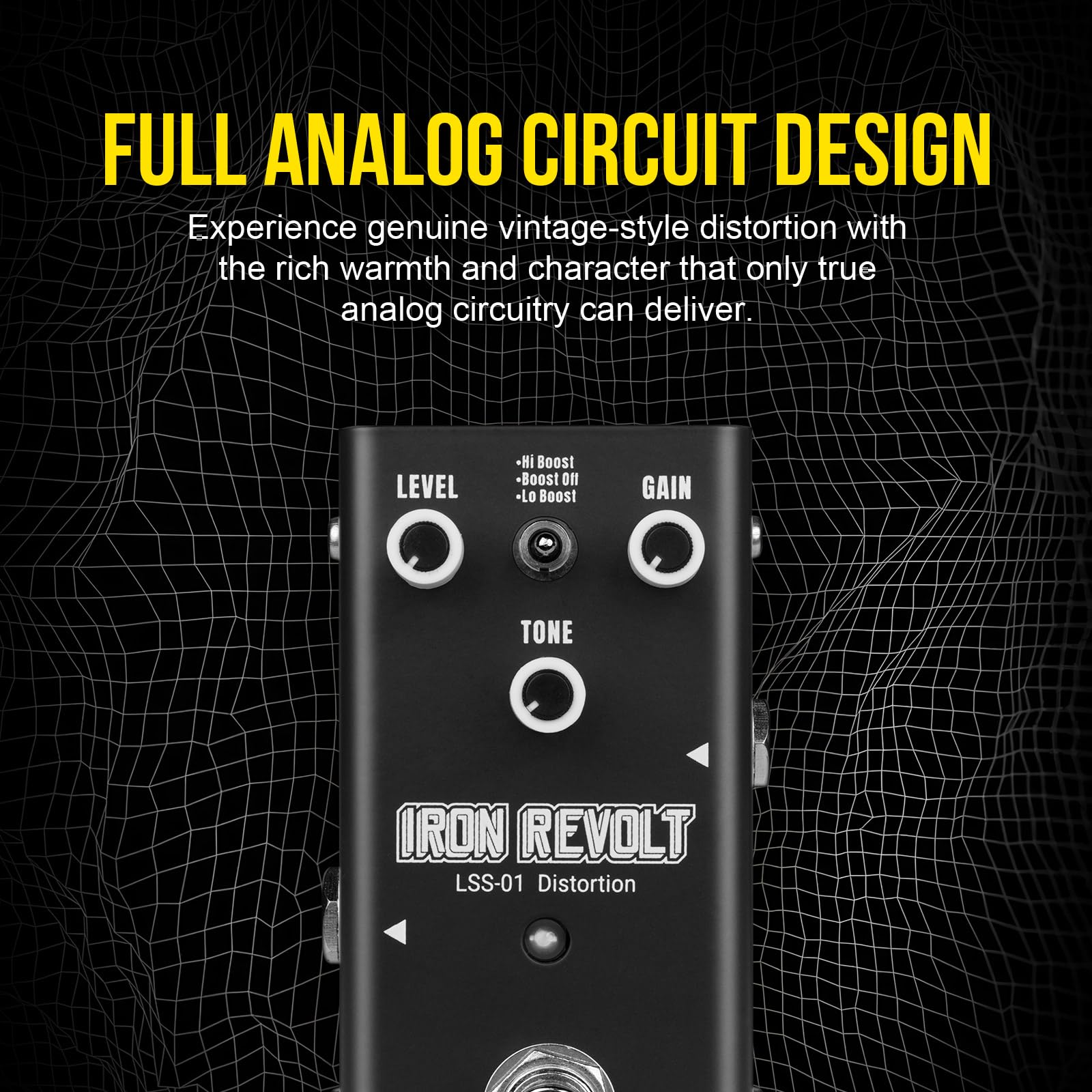 【Full-Analog Circuit Design】Features a pure analog circuit for a genuine, classic distortion tone with rich harmonics and organic response.