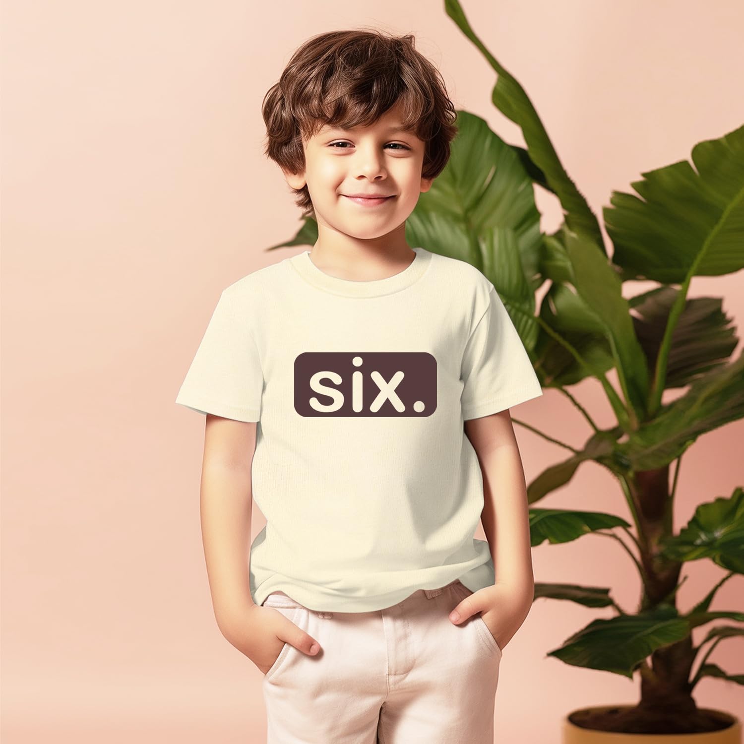 The 6 year old boy birthday gift in Ivory Beige is made from 100 Percent Cotton material. The design on five shirt is made with high quality material. All our products are machine washable. The material is soft and washes really well.