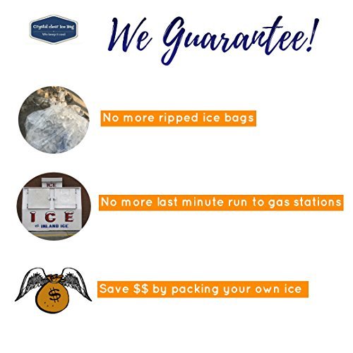 ✔ SUPER STRONG - Our Bags are 1.5 mil Thick and are Rated to carry at least 10 lb of ice. EVA has been added to increase the strength and puncture resistance. We can Guarantee that there will be no ripping & tearing while carrying and no more bursted ice bag while breaking ice on floor.