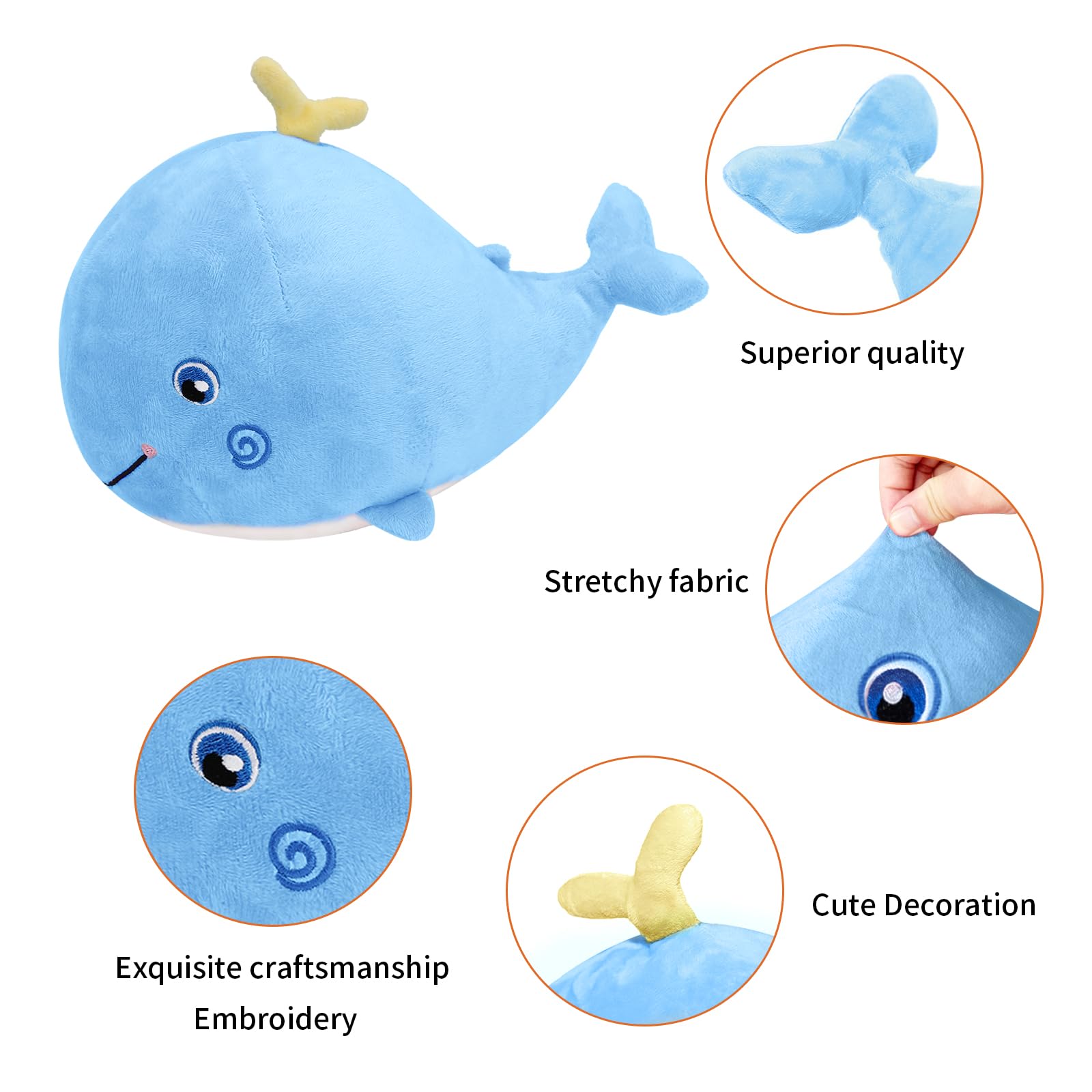 This kawaii whale stuffed animals plush is suitable for sofa, living room, bedroom, children's room and every place you like, they can make you happy all day