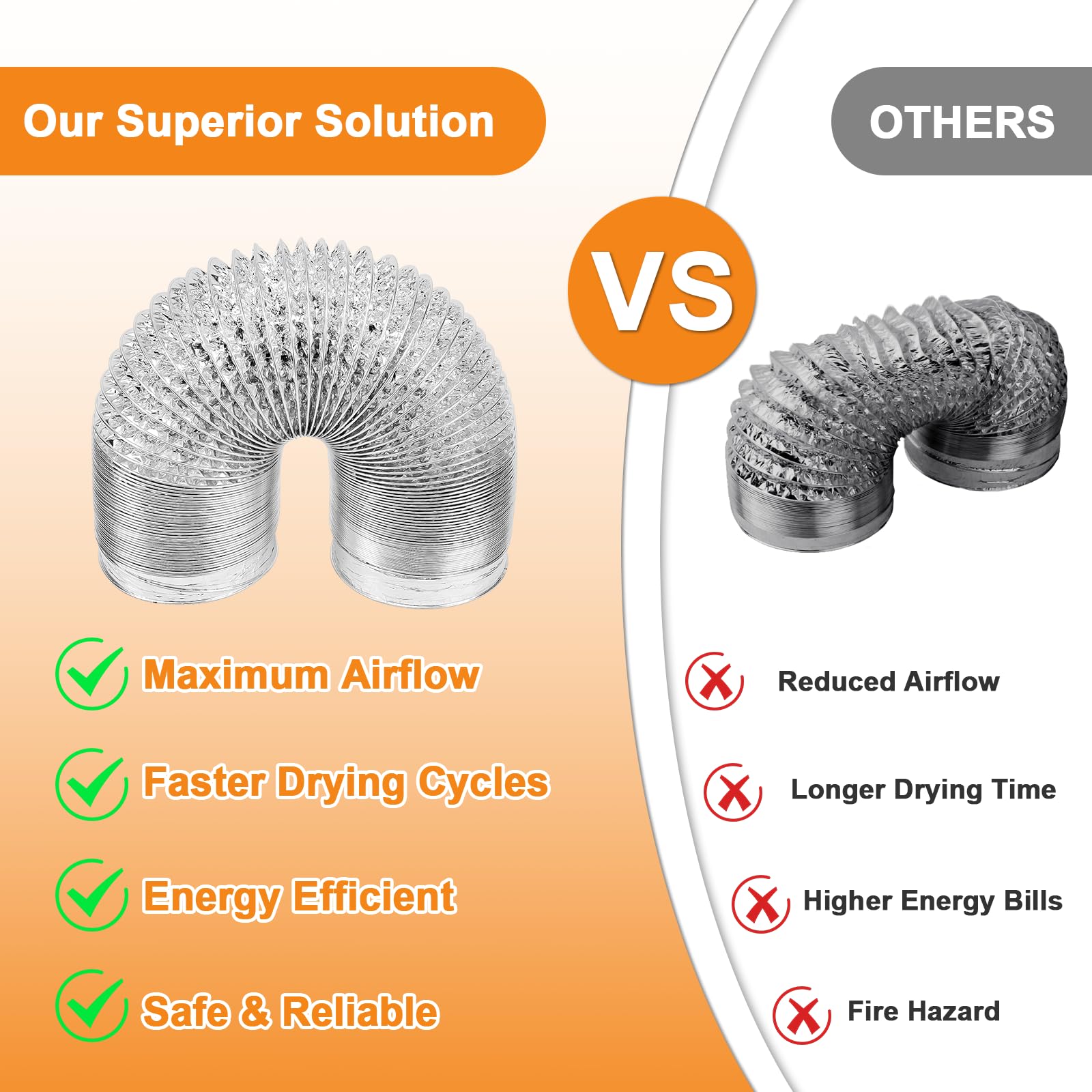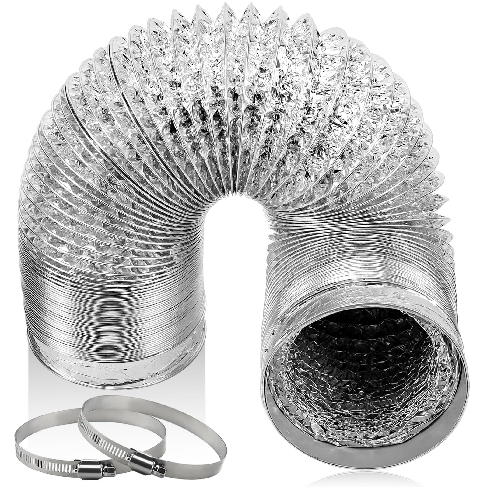 HIGH QUALITY:Flexible ventilation pipe made of high-quality flame-retardant aluminum and built-in corrosion-resistant steel wire spiral.Temperature endurance range is 0 - 185°F. (-18°C - 85°C).4 inches (diameter) x 3 feet (length) when fully extended